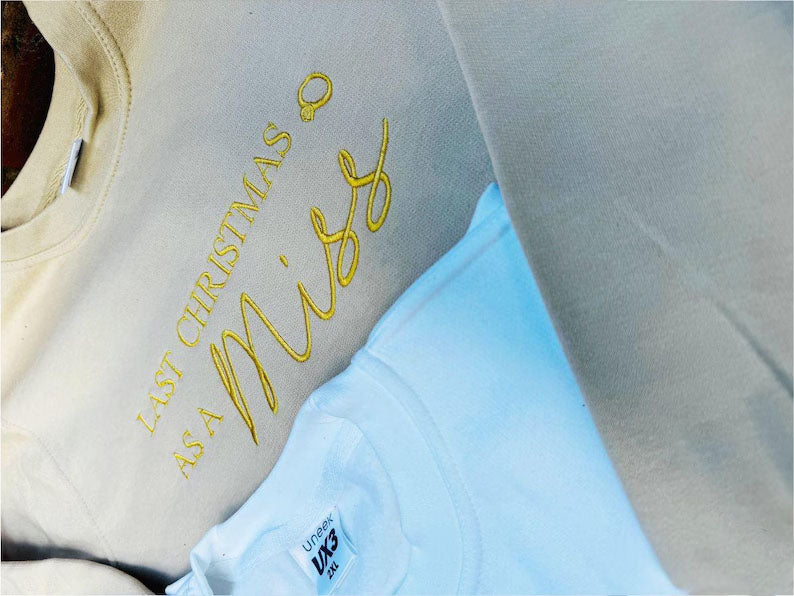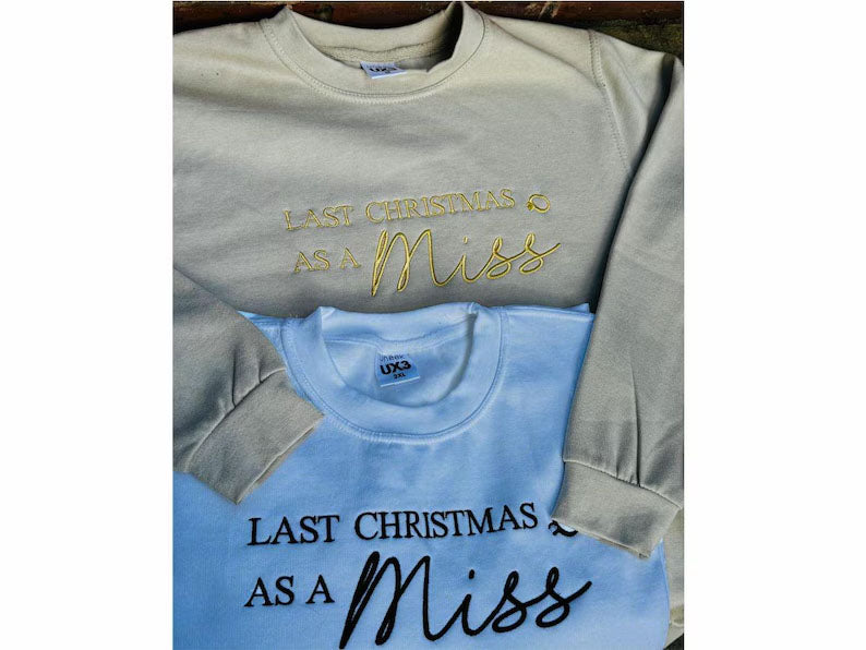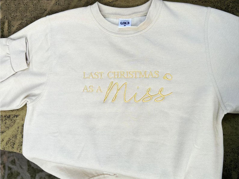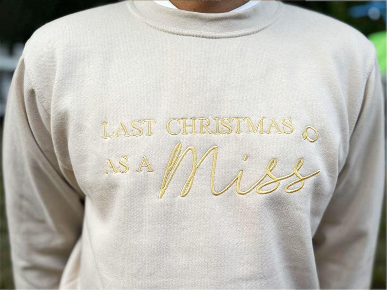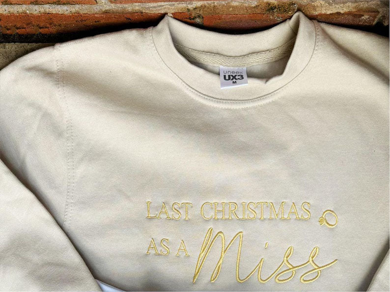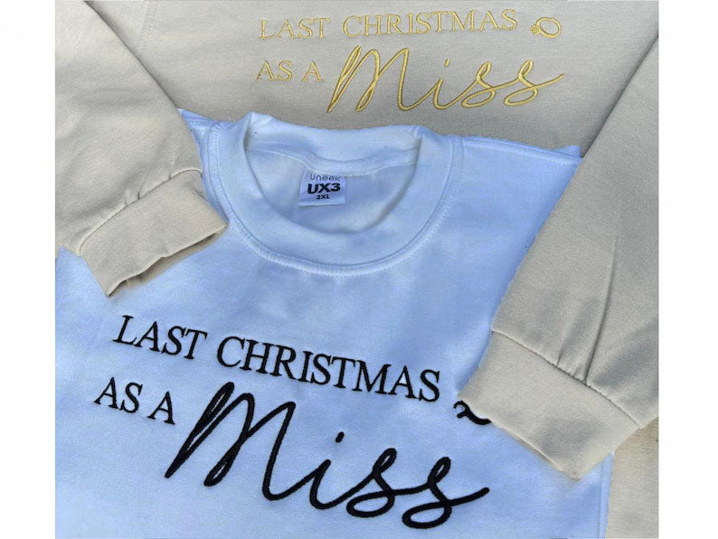 Christmas Embroidered Sweatshirt, Last Christmas as a Miss Sweatshirt, Future Bride To Be Xmas Eve Jumper, Christmas Party Outfits for Her