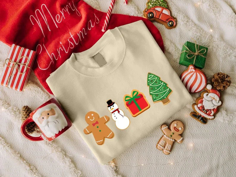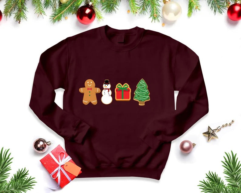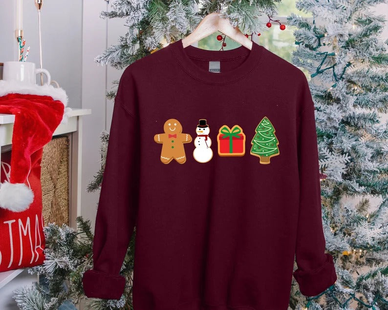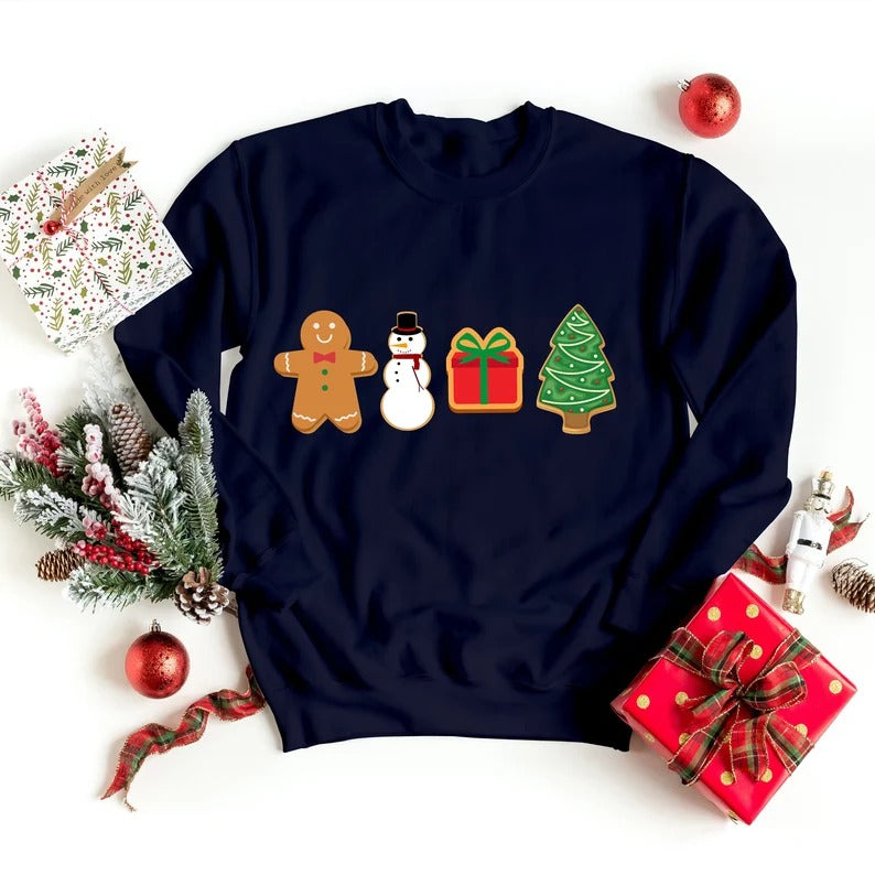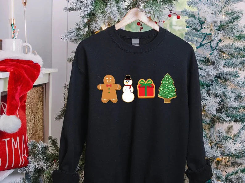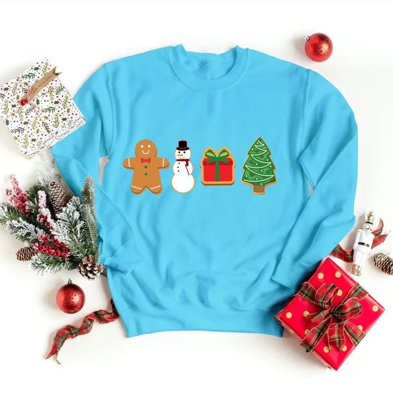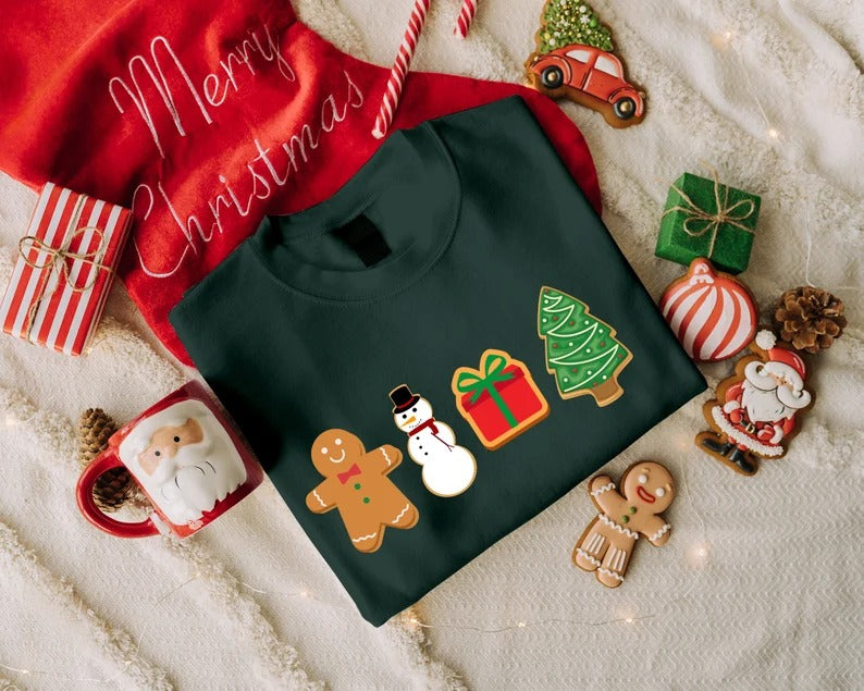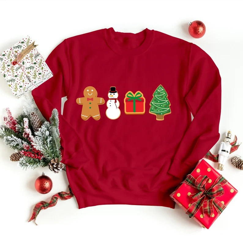 Christmas Gingerbread Cookies Sweatshirt, Xmas Family Matching Printed Sweater, Christmas Holidays Adults Kids Sizes Jumpers, Xmas Eve Gifts