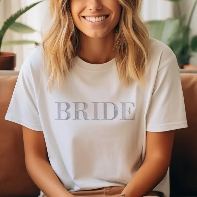 Custom Embroidered Bride and Groom Shirt, Personalised Newlywed Couple Matching Shirt, Mr and Mrs Wedding Tops, One Year Anniversary Gift