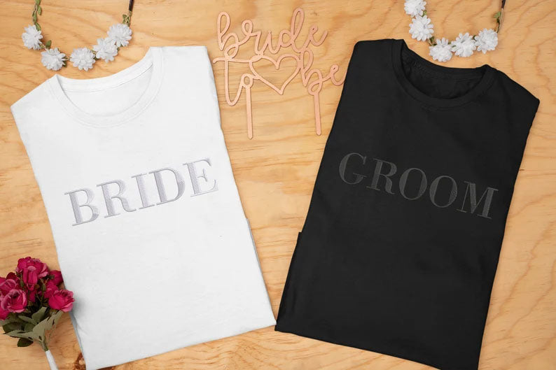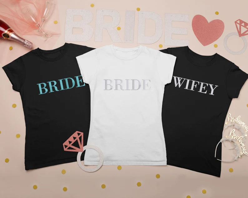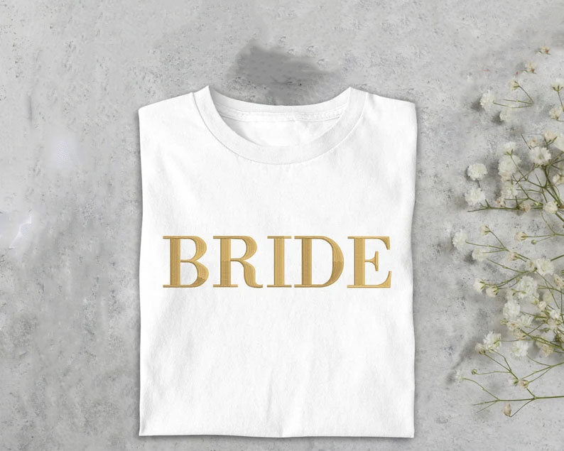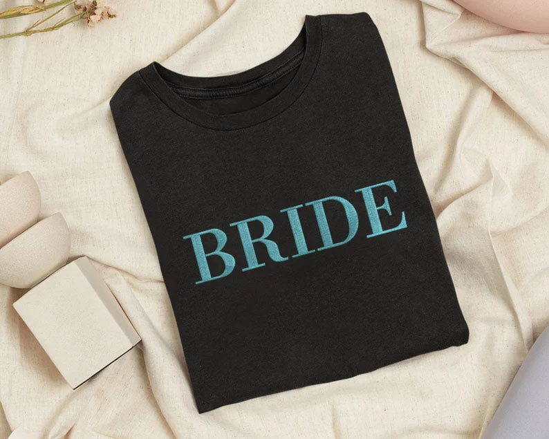Custom Embroidered Bride T-Shirt, Bride To Be Shirt Bachelorette Couple Matching Bridal Party Engagement Mrs Wedding Gift Comfort Colors Tee