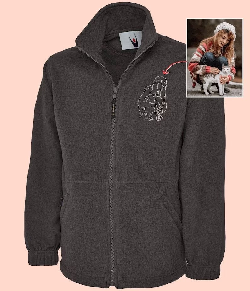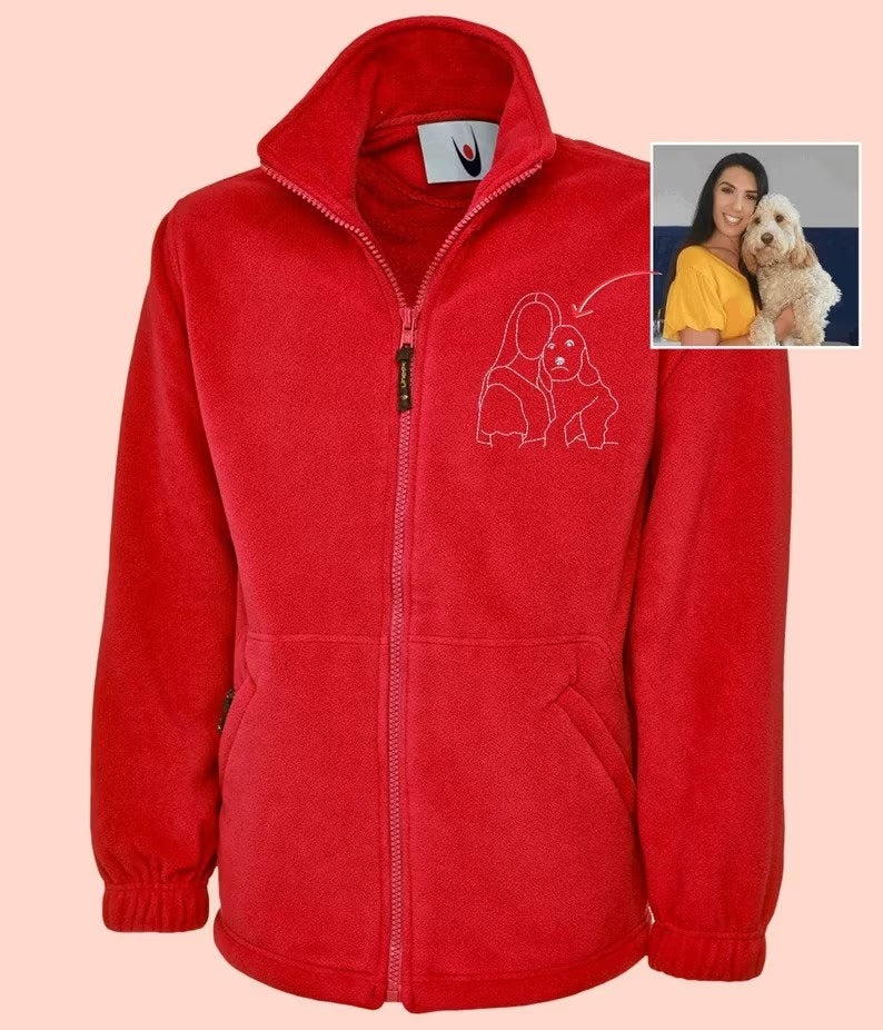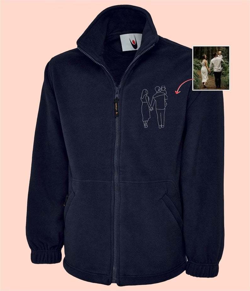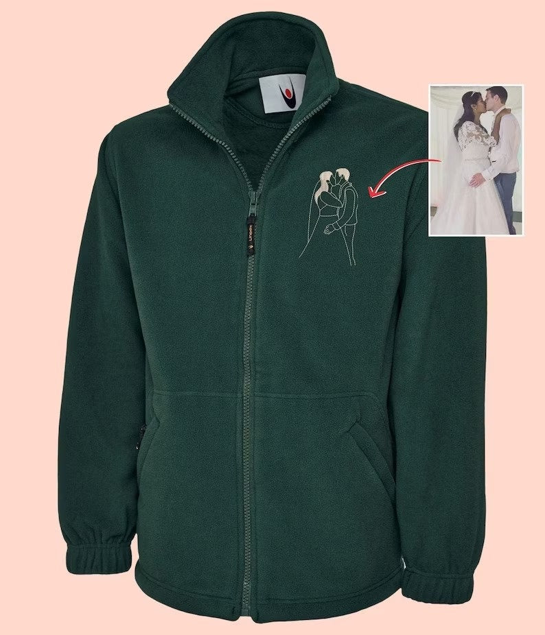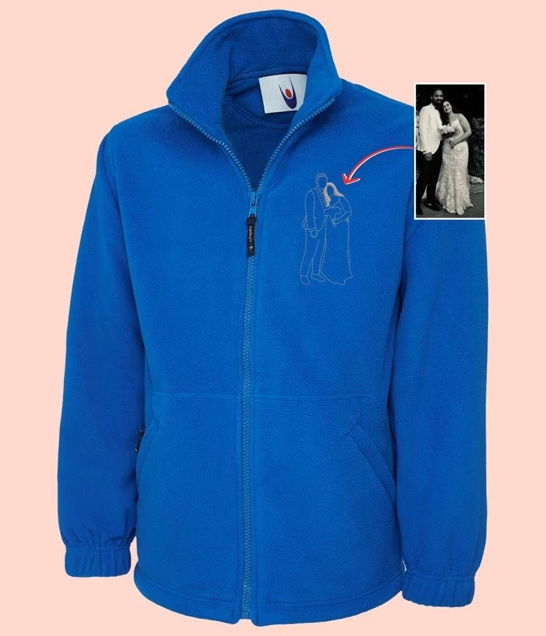 Custom Embroidered Photo Fleece Jacket, Personalised Monogram Couple Design Zip Up Fleece Jacket, Family Matching Unisex Memorial PresentsThis price is... Read more