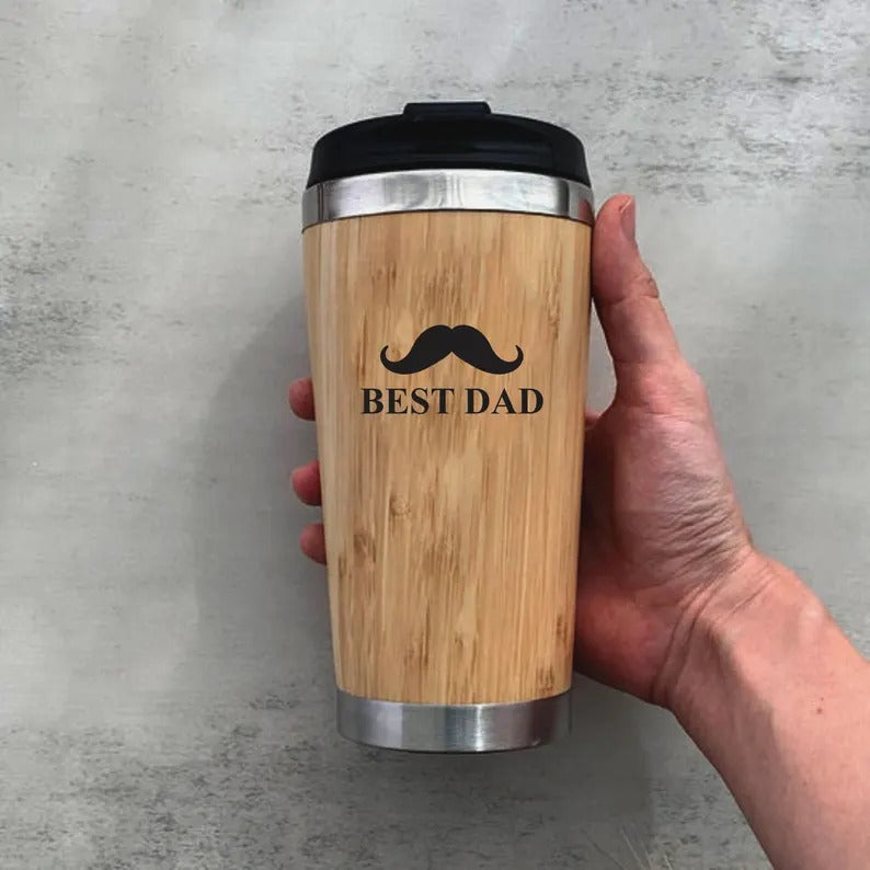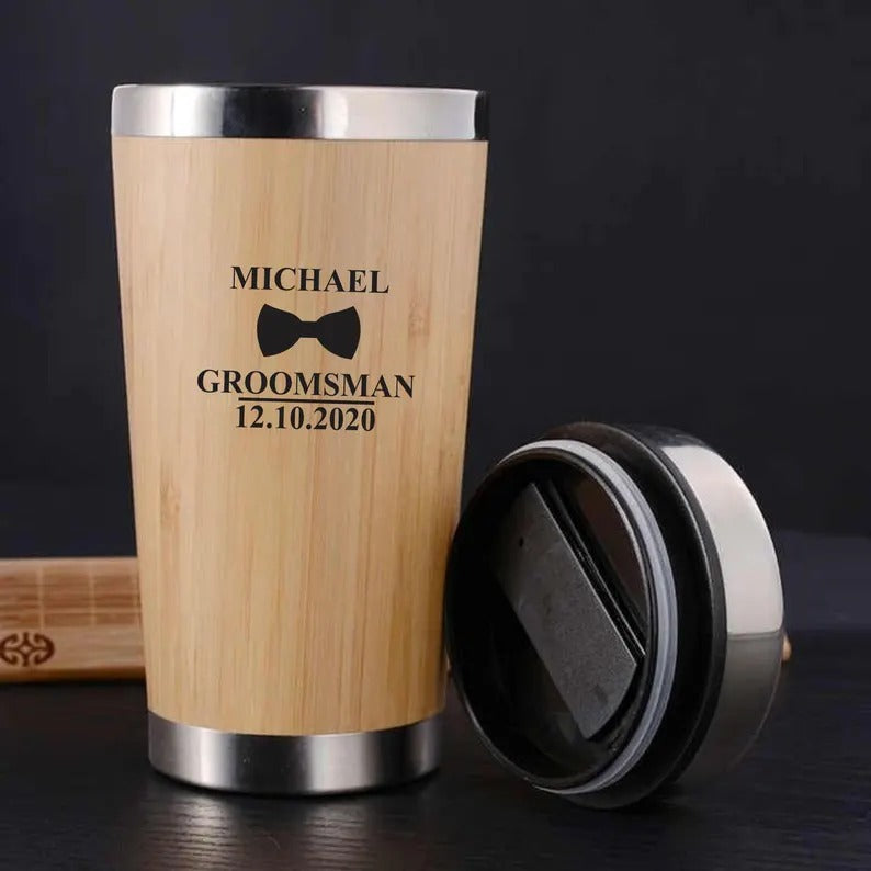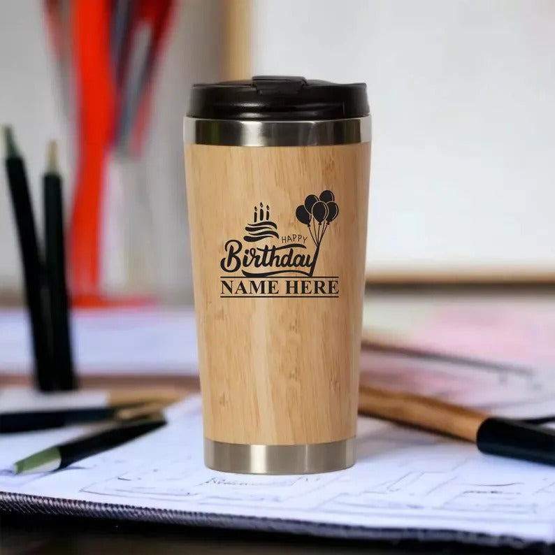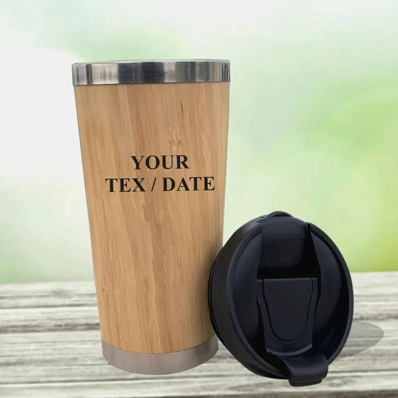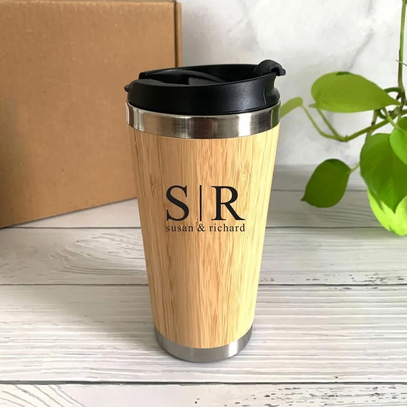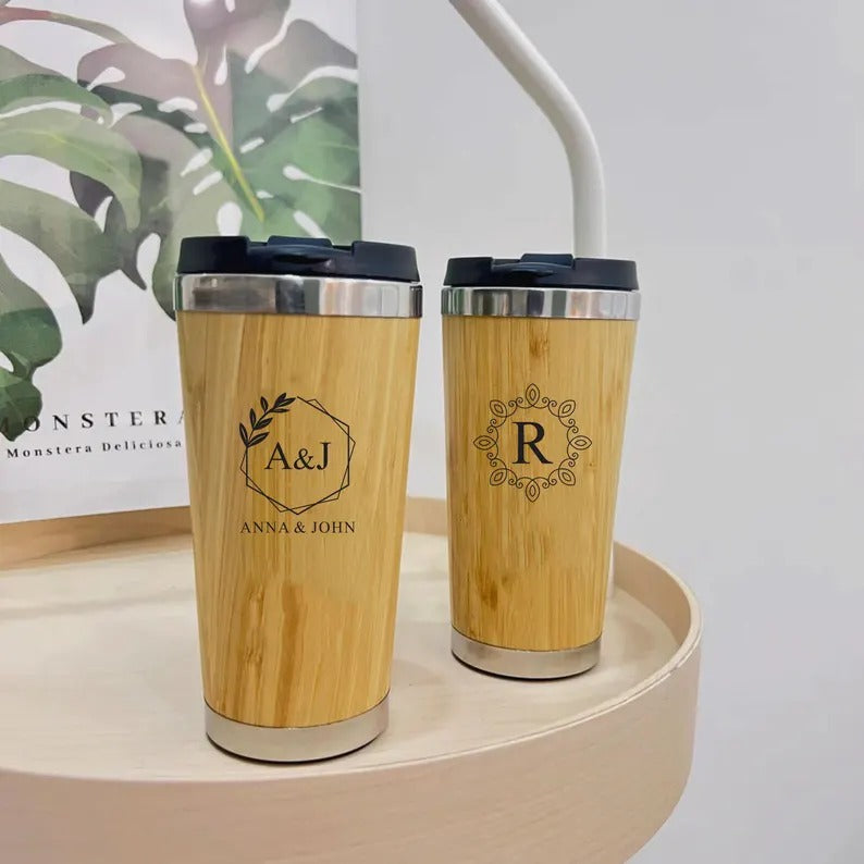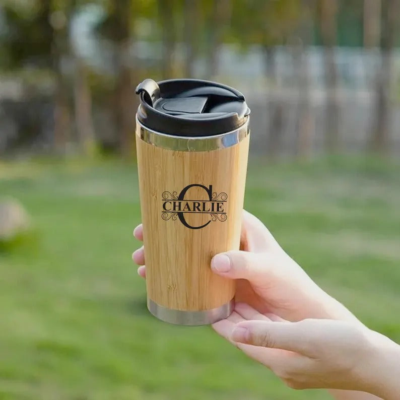 Custom Engraved Bamboo Coffee Mug, Personalised Name/Date Monogram Tumbler