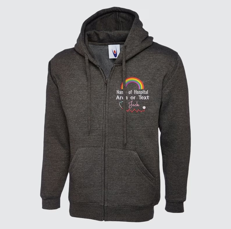 Custom Medical Monogram Embroidered Zip Up Hoodie, Custom Name Rainbow Logo National Healthcare Staff Unisex Hoodie, Gift for Doctors Nurses