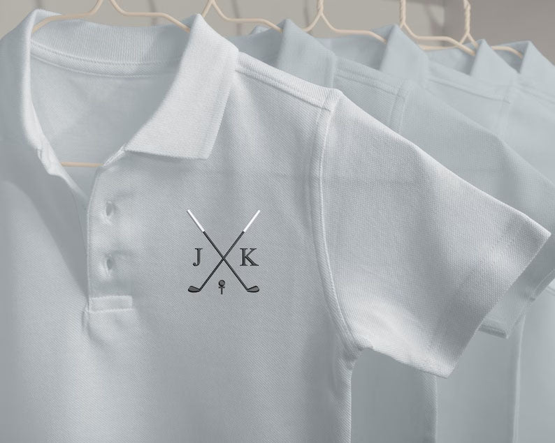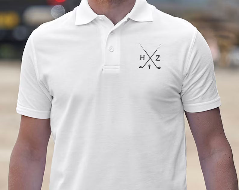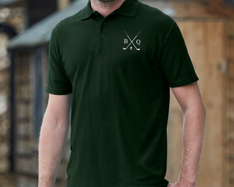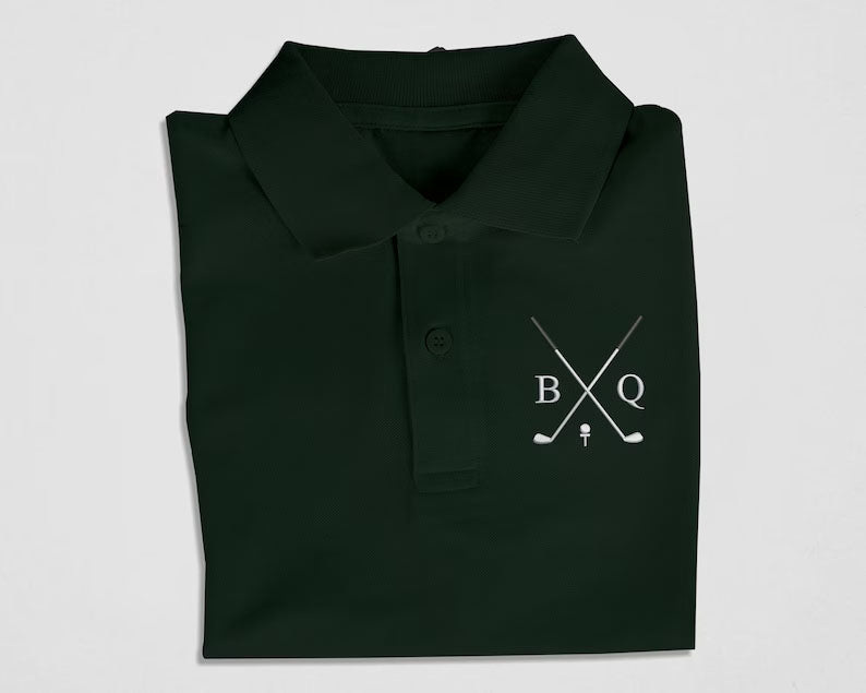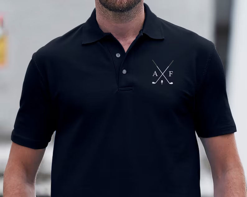 Customised Mens Polo Shirt, Golf Embroidery Polo Tee Shirt, Personalised Initials Monogrammed Matching Tshirt, Golfer Lover Gift for Husband