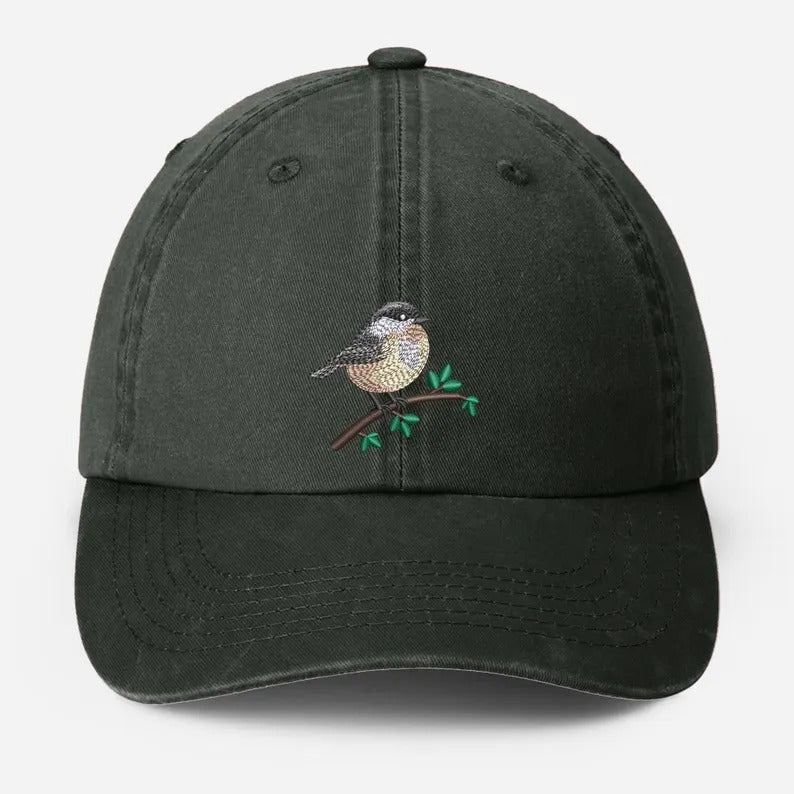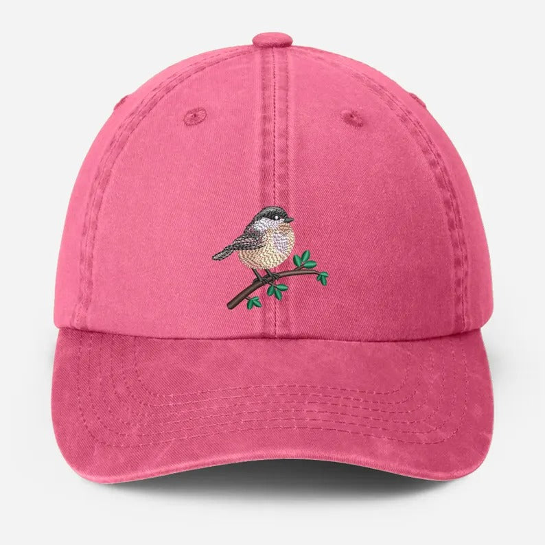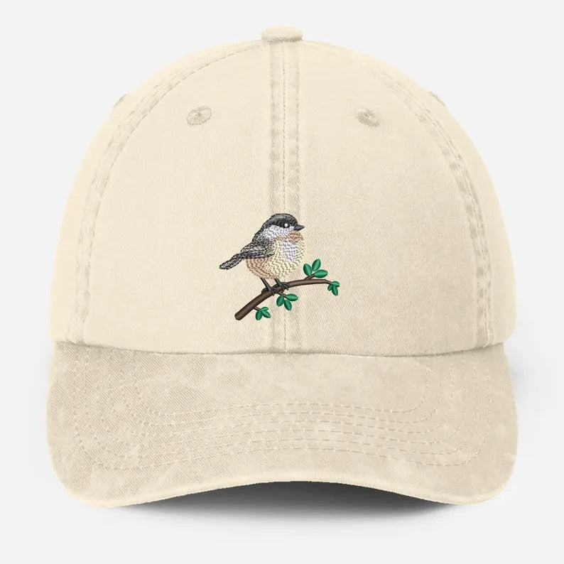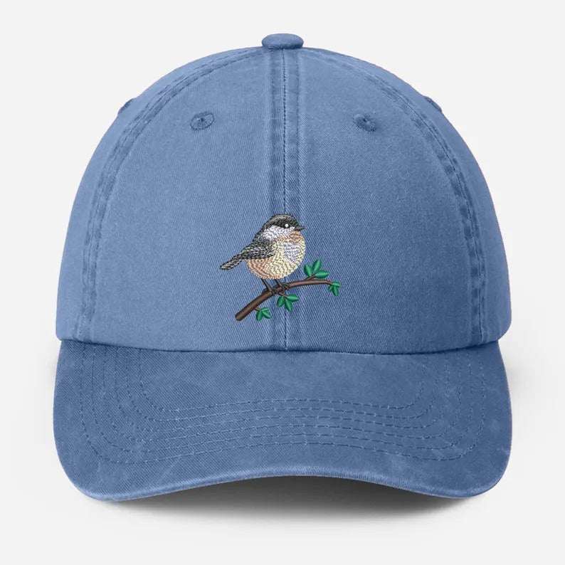Embroidered Black Capped Chickadee Hat, Wildlife Bird Watcher Hat, Bird Lover Gift