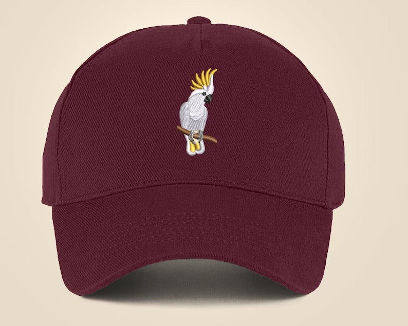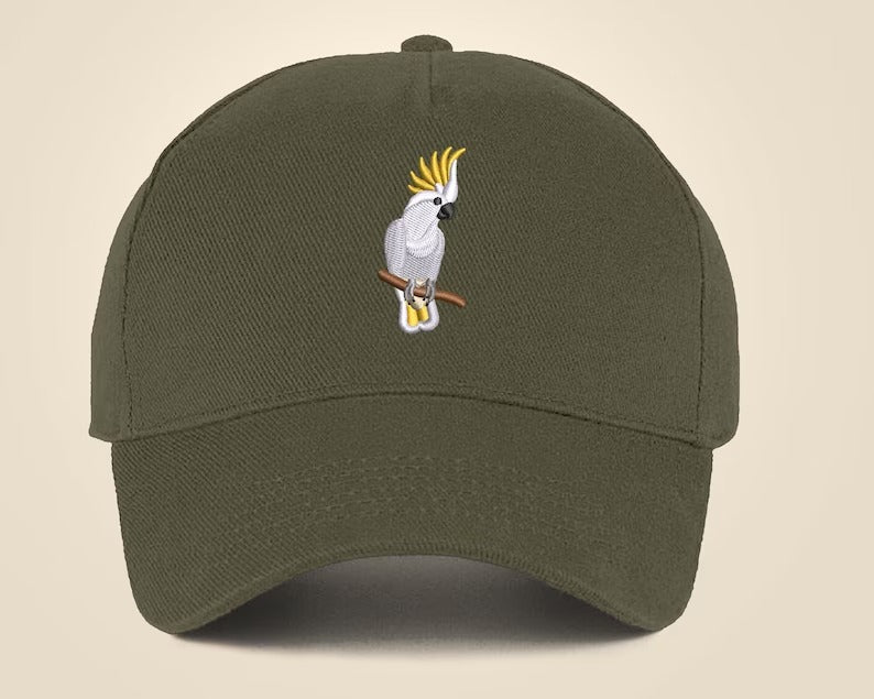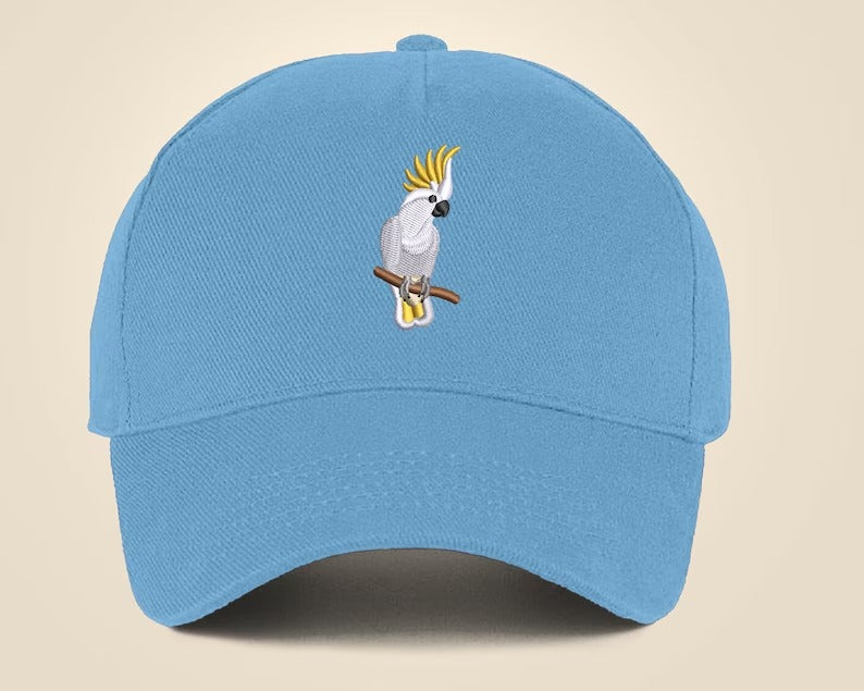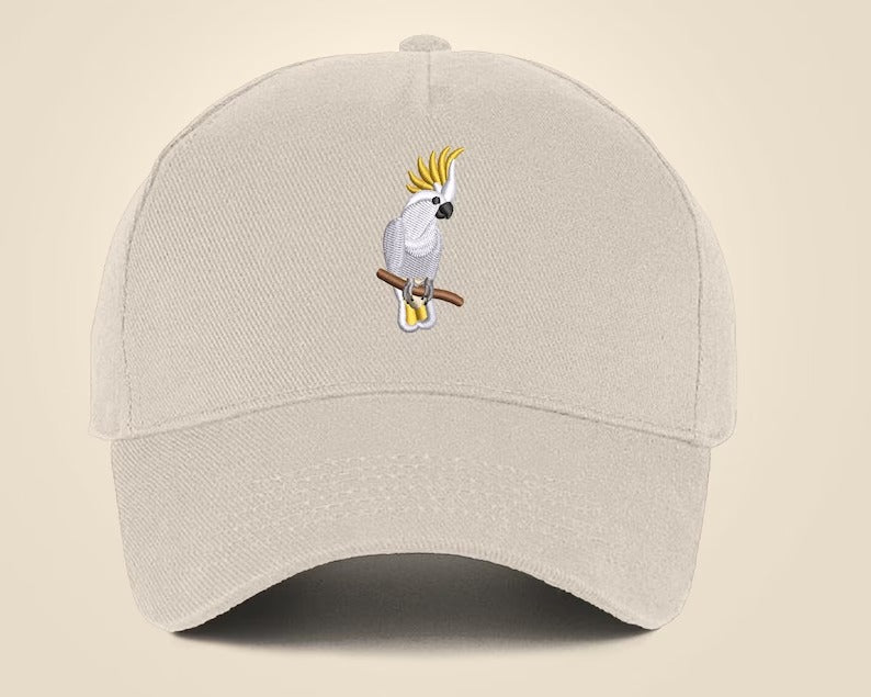 Embroidered Cap, Embroider White Cockatoo Parrot Hat, Wildlife Baseball Fitted Snapback Cap, Embroidered 5 Panel Trucker Hat Bird Lover Gift