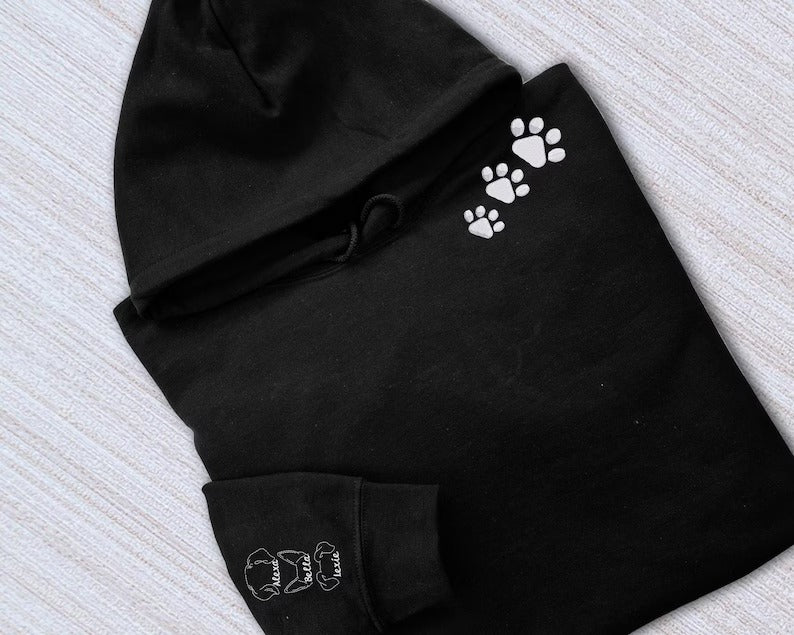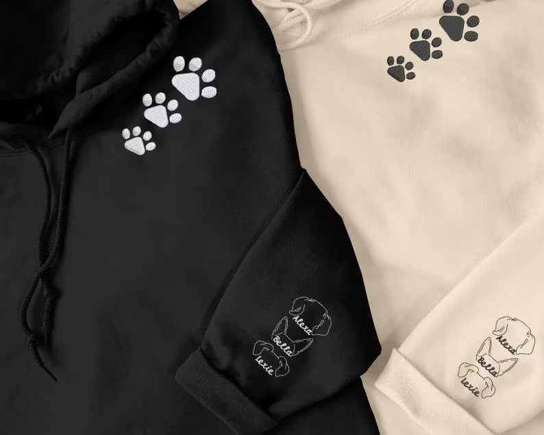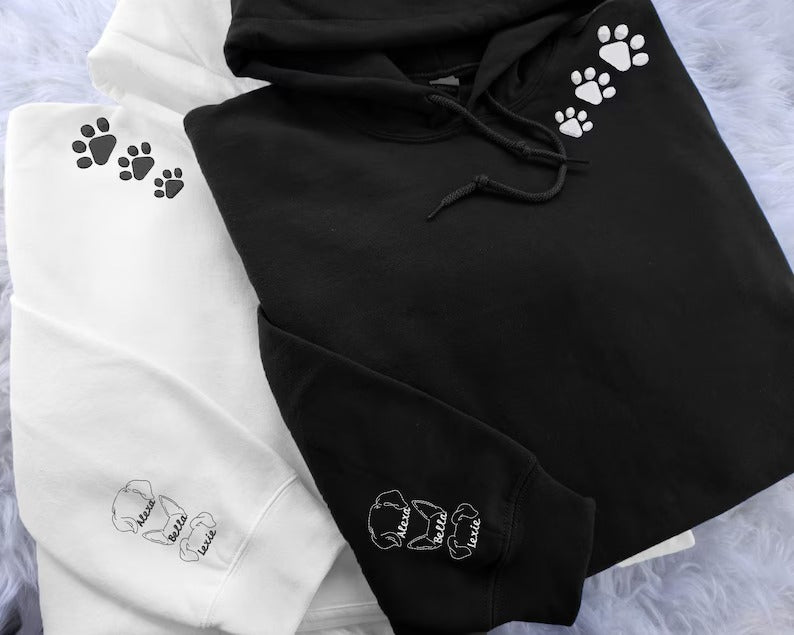 Embroidered Dog Hoodie, Personalised Pet Names and Ears on Sleeve Jumper, Dog Mom Hoodies, Birthday Presents, Dog Lovers Hooded Sweatshirts