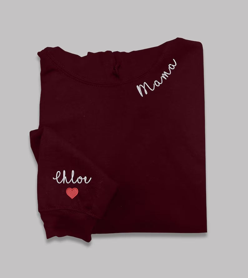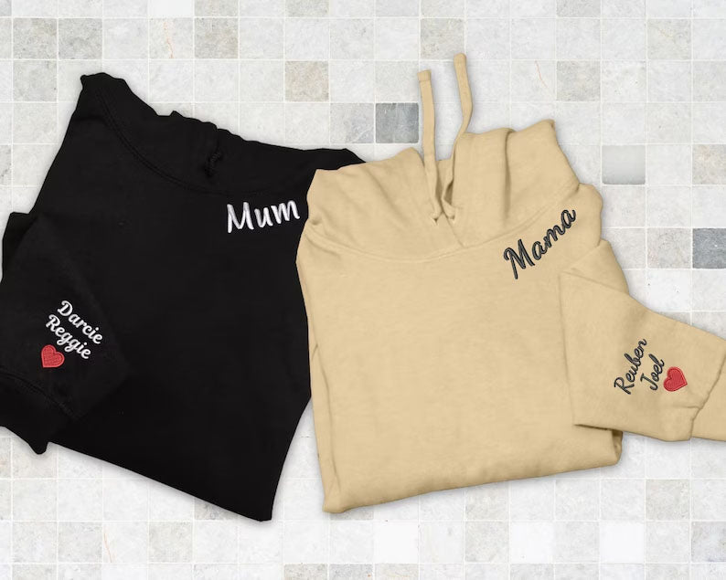 Embroidered Mama Hoodie, Custom Collar and Sleeve Embroidered Hoodie, Gifts for Grandmother Mum Jumper, Mother’s Day Gift Initials HoodieThis price... Read more