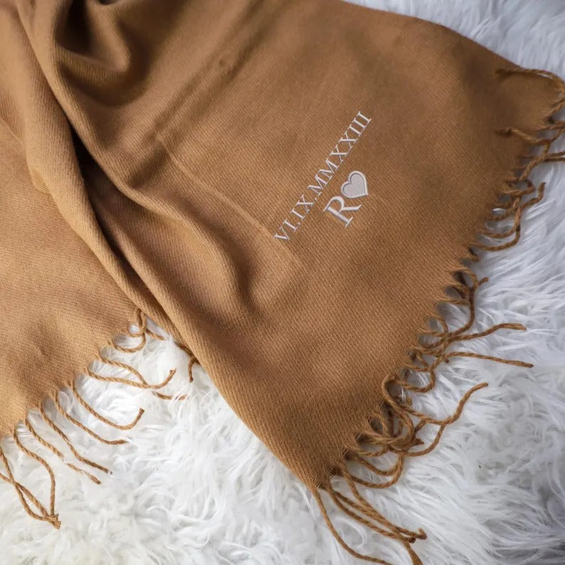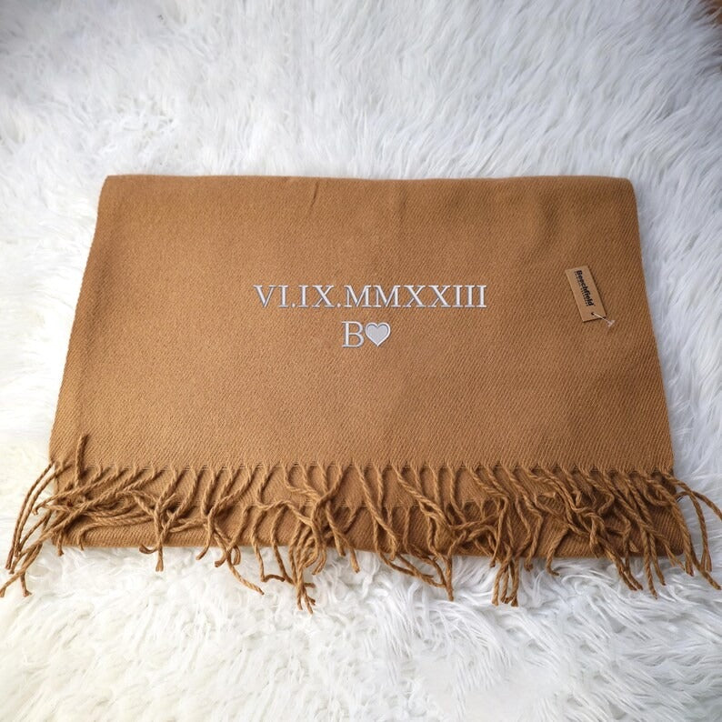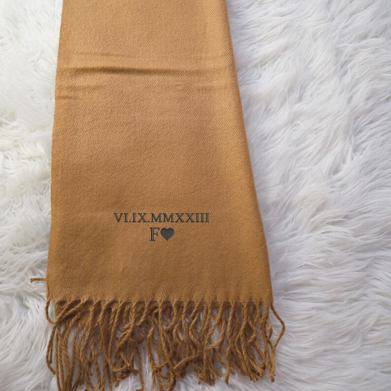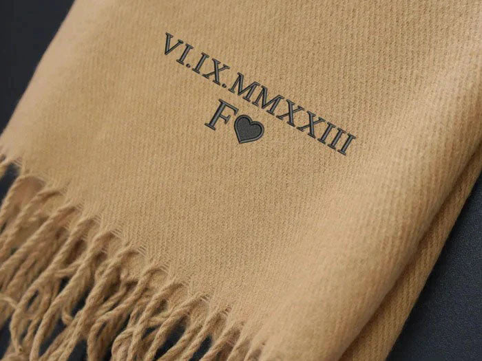 Embroidered Roman Numeral Date Scarf, Personalised Name Initials Winter Scarf