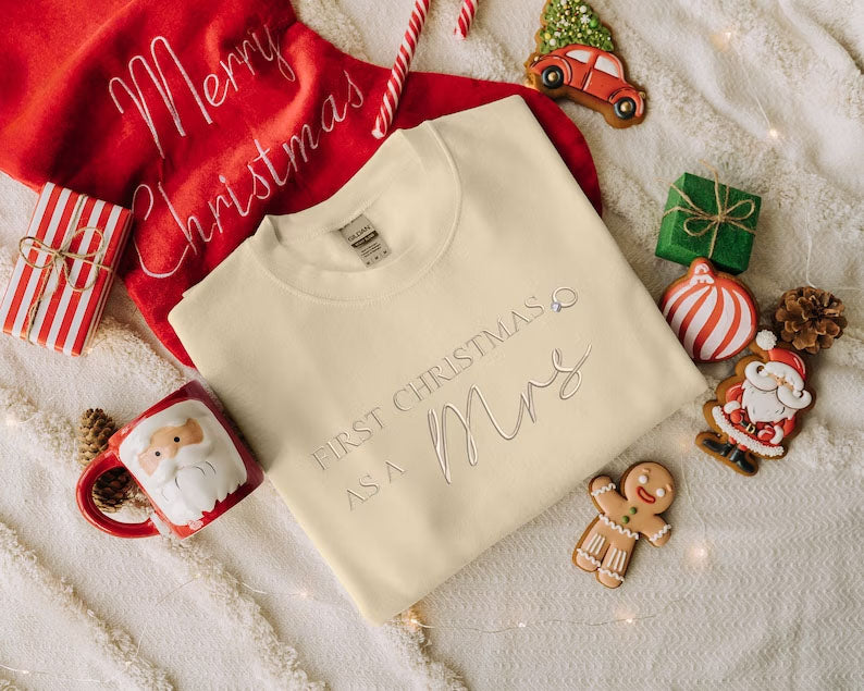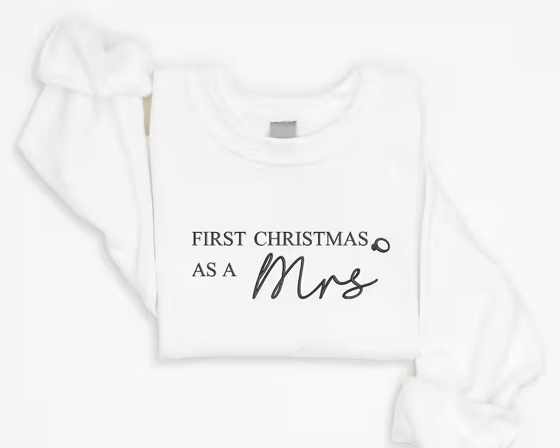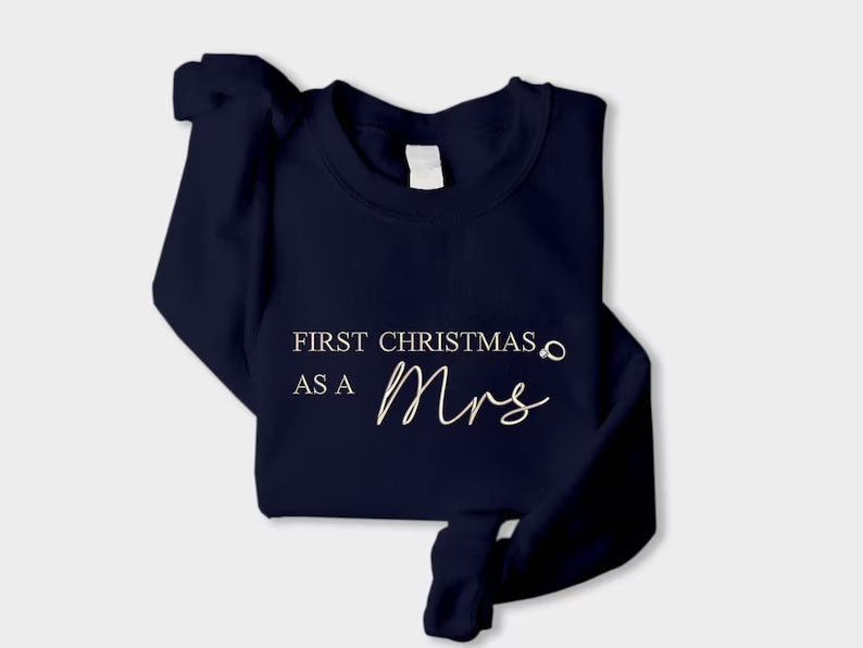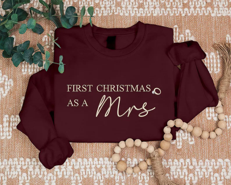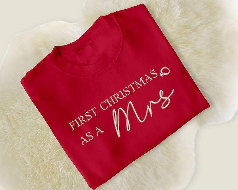 First Christmas Married Sweater, Our First Xmas Embroidered Mr and Mrs Jumper, Hen Do Wedding Party Mrs Outfit, Xmas Eve Gift Idea for Wifey