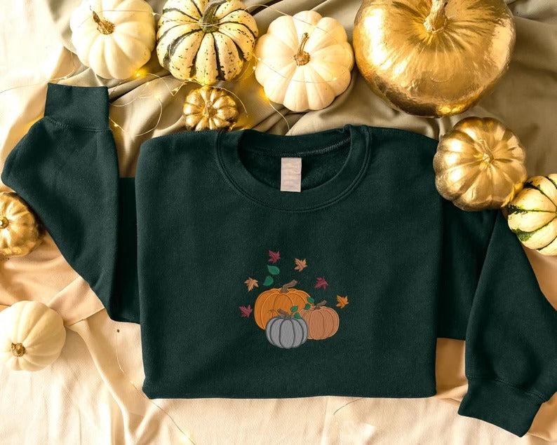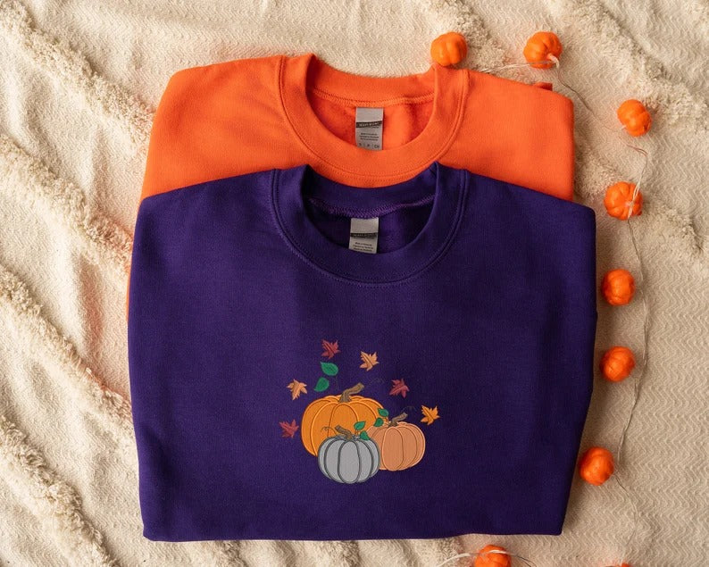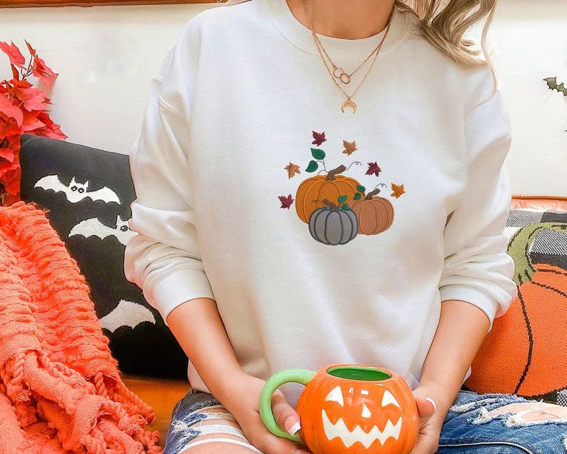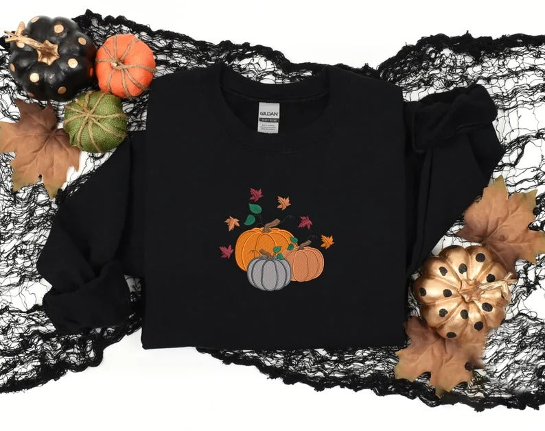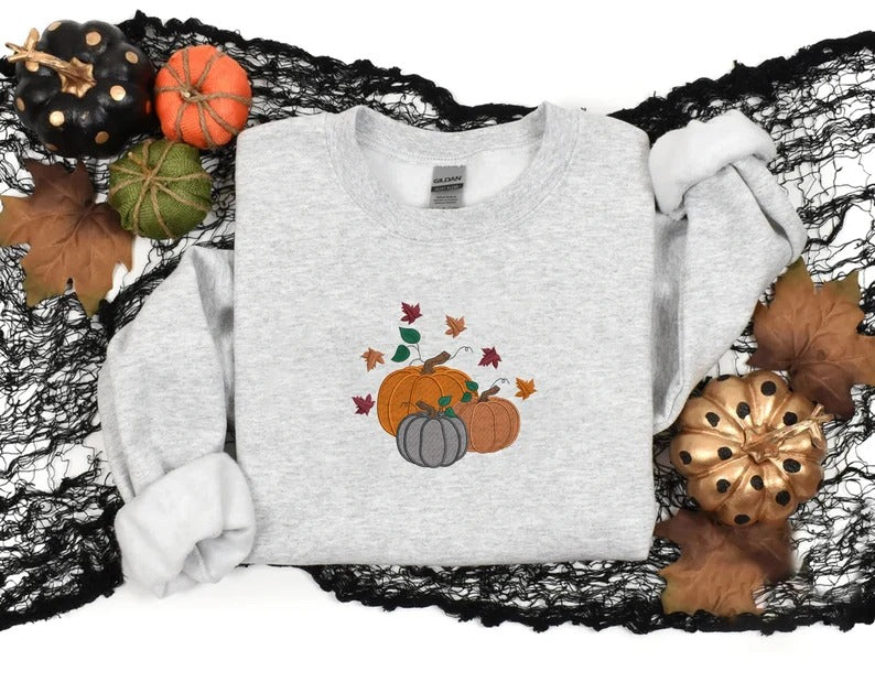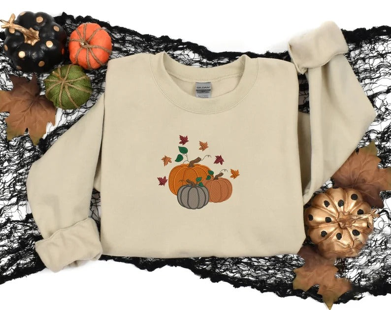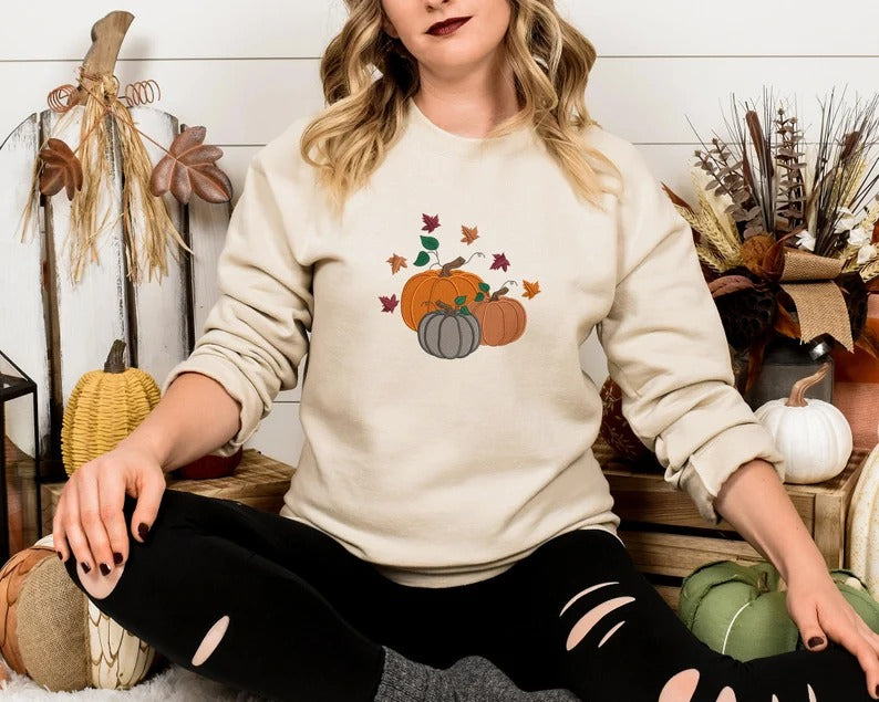 Halloween Pumpkin Sweatshirt, Autumn Fall Leaves Sweatshirt, Gifts for Him