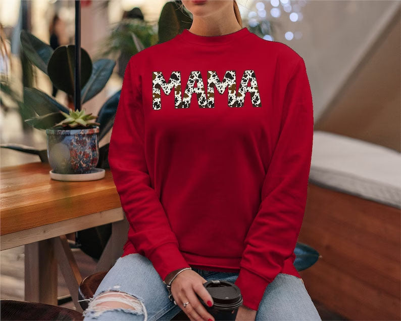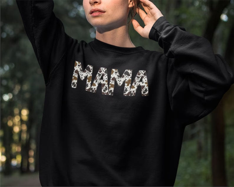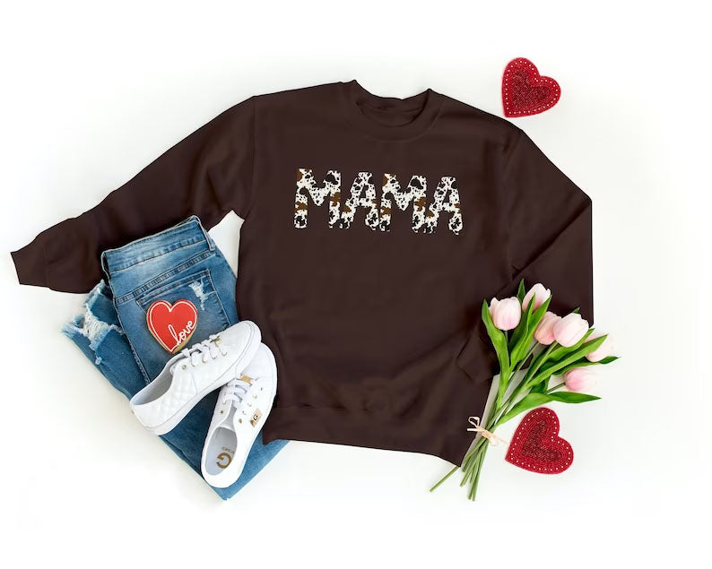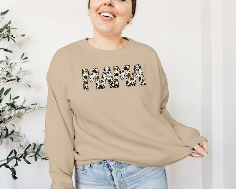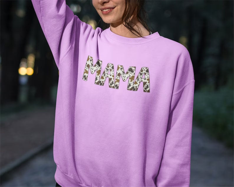 MAMA Sweatshirt, Buffalo Plaid Cow Print Word Mama Design Crewneck Jumper, Comfort Colors Women Sweatshirt, Mothers Day Gift,