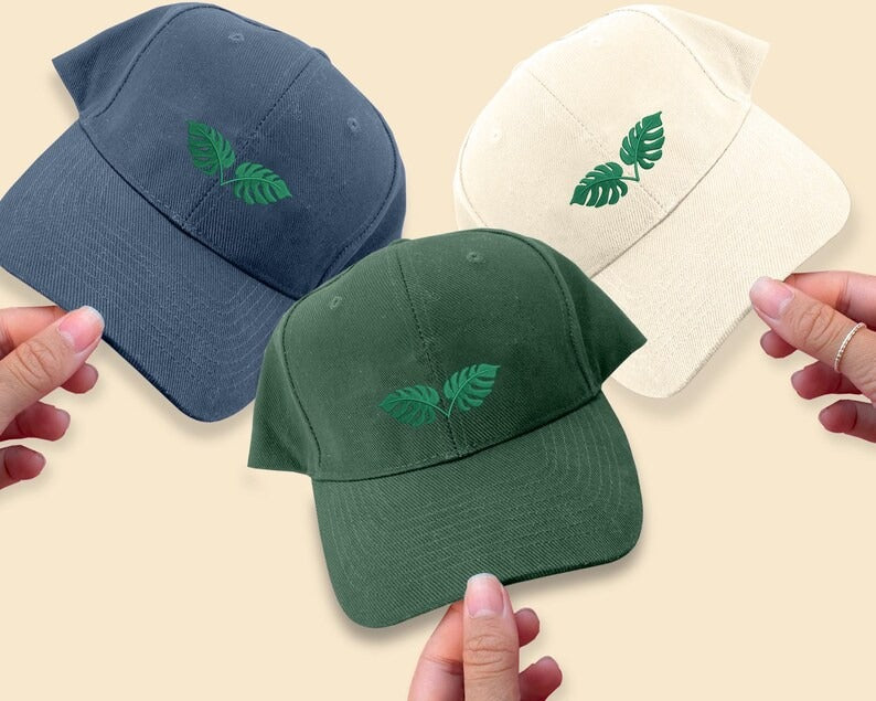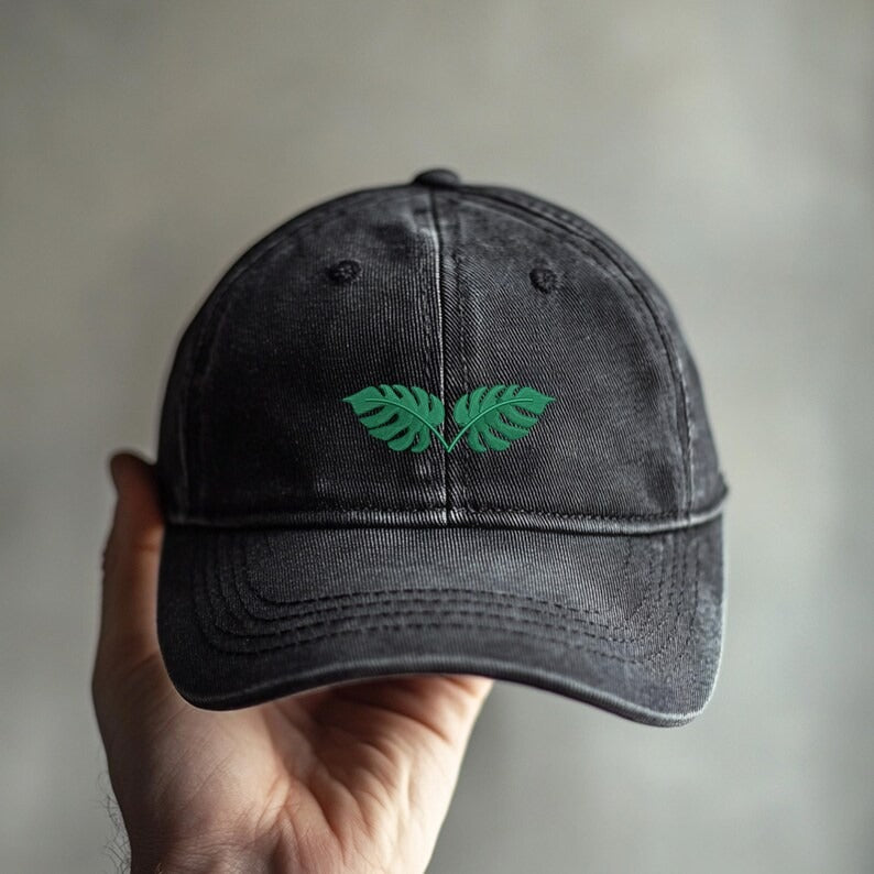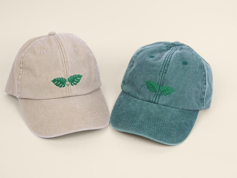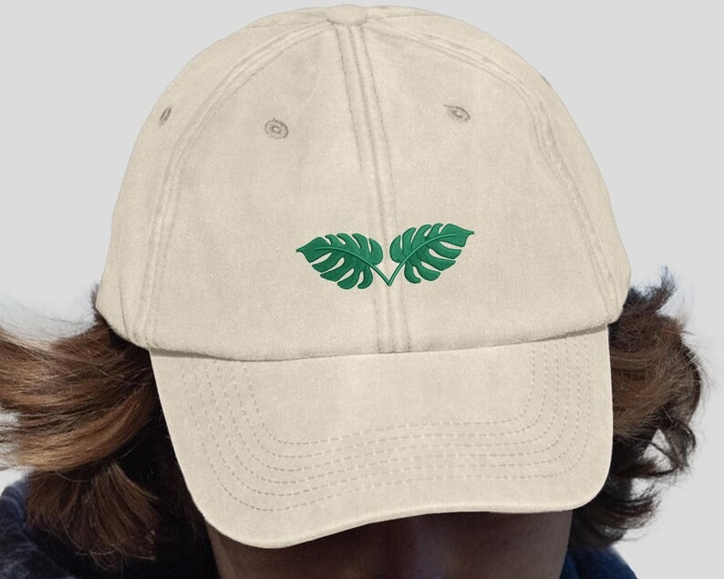 Monstera Tropical Leaf Hat – Embroidered Vintage Baseball Cap, Embroidered Hats
