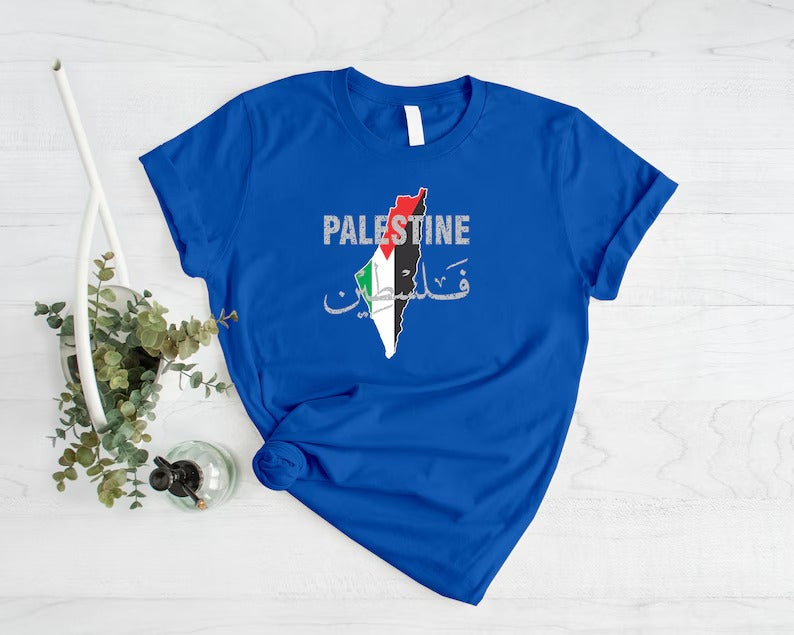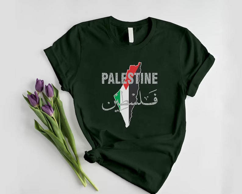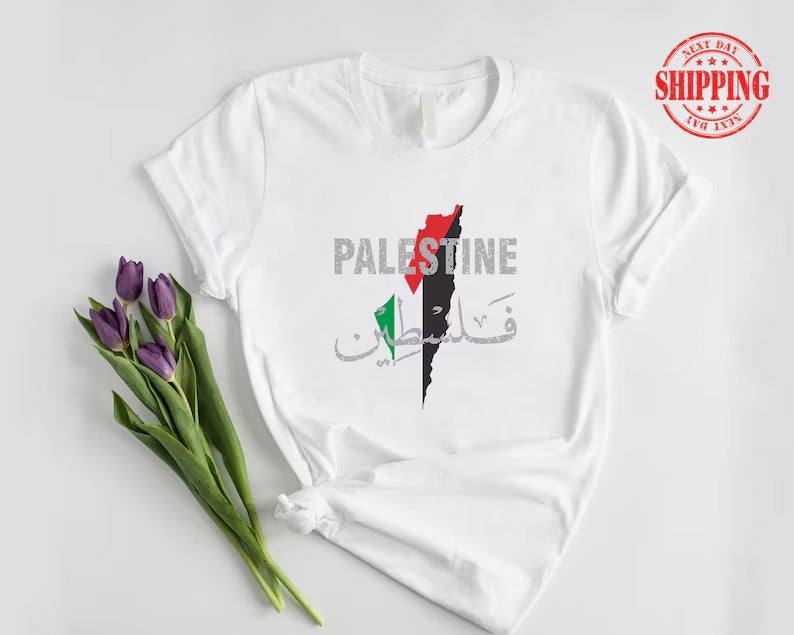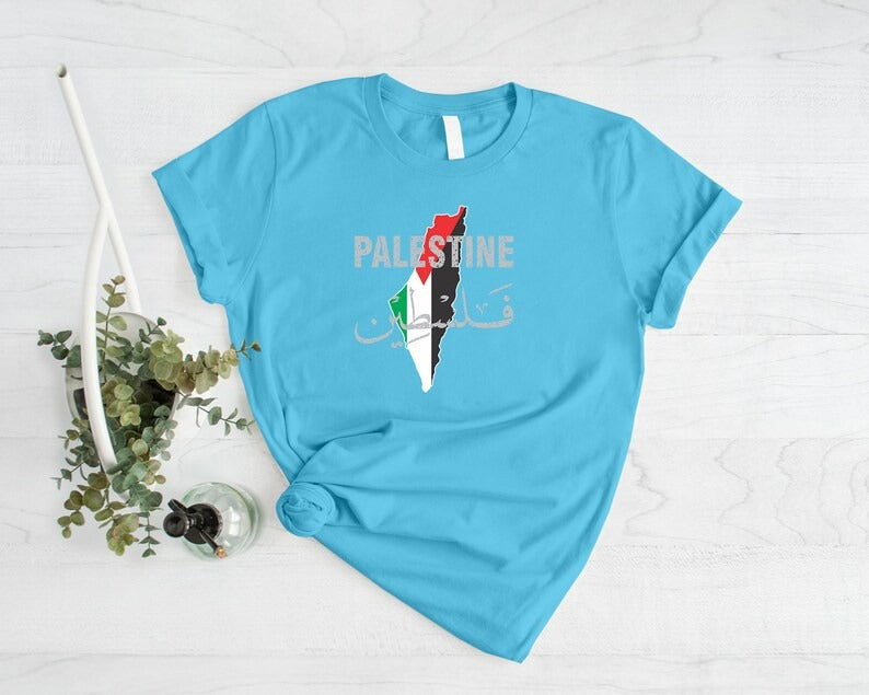 Palestine Name Flag Printed T-Shirt, Palestine Arabic Calligraphy Shirt, Comfy Adults Tops