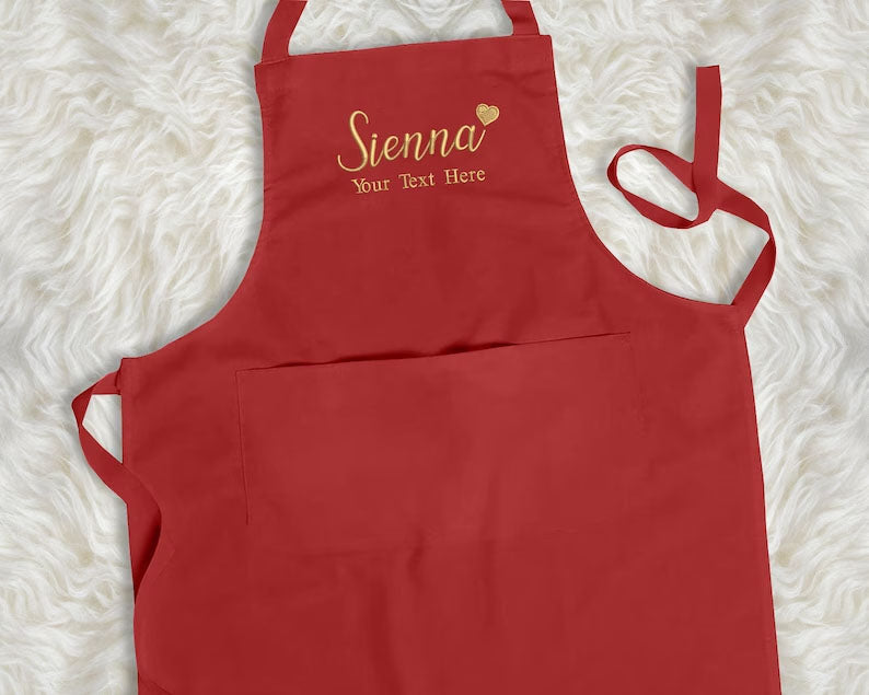 Personalised Cooking Chef Apron, Embroidered Custom Name Monogram Embroidered Apron With Pouch, Baking Aprons for Men Womens, Gift for Her