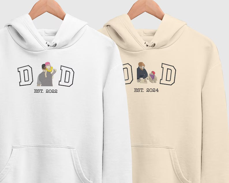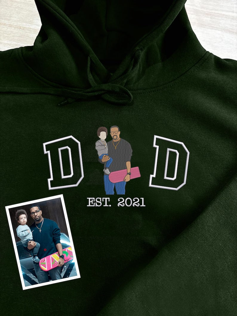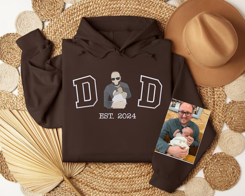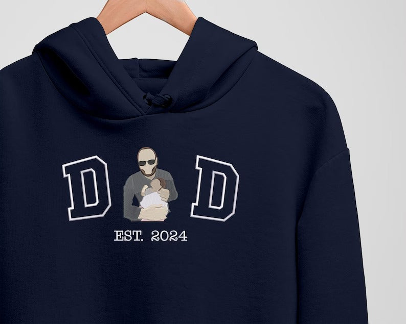 Personalised Dad Photo Portrait Hoodie, Embroidered Sketch Hoodie, Gifts for Dad