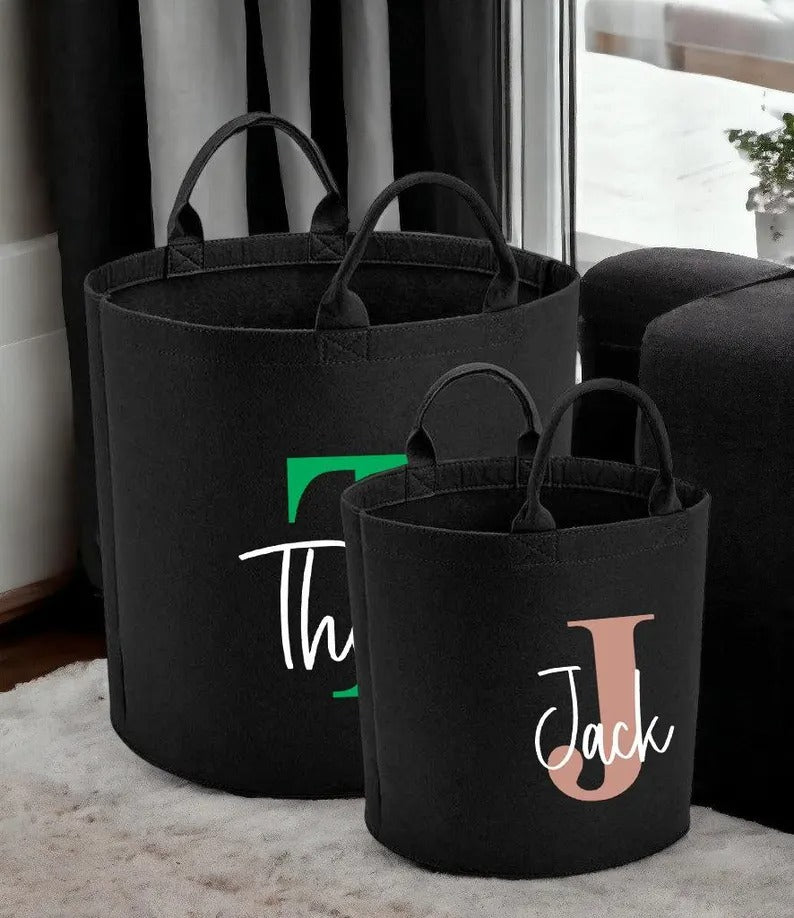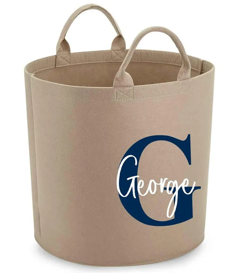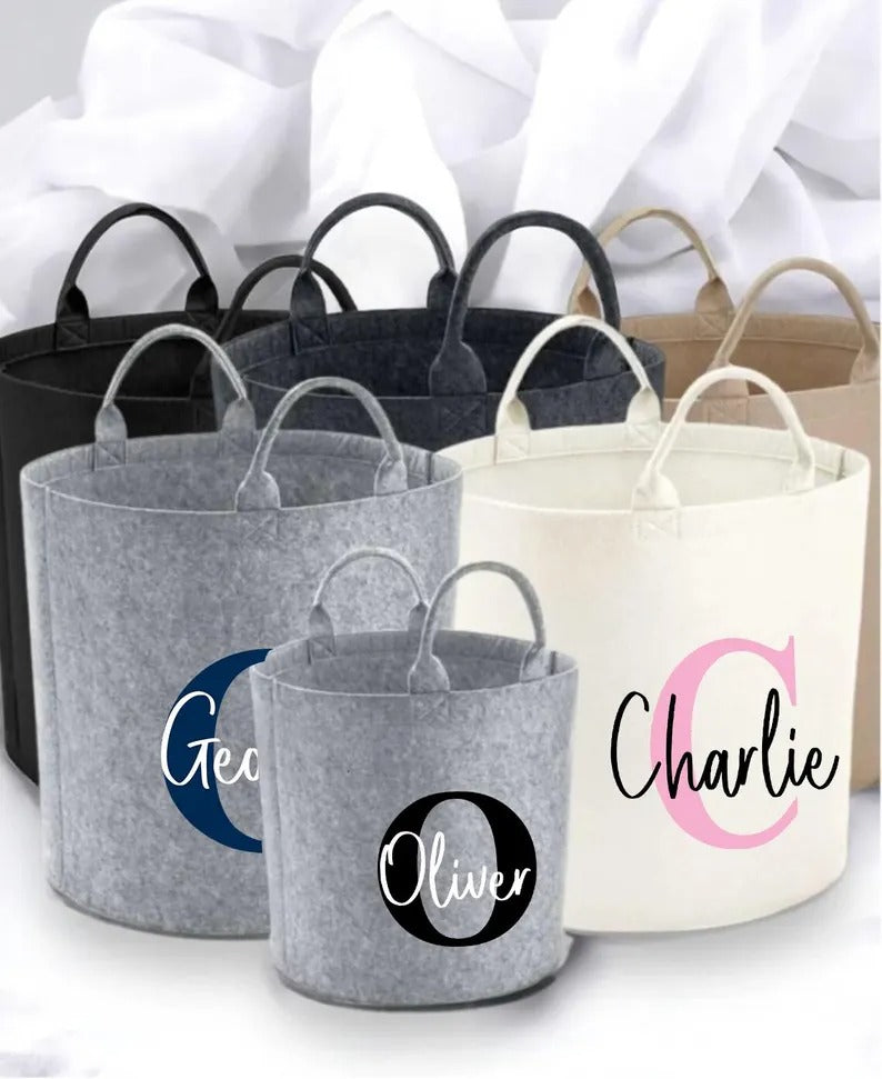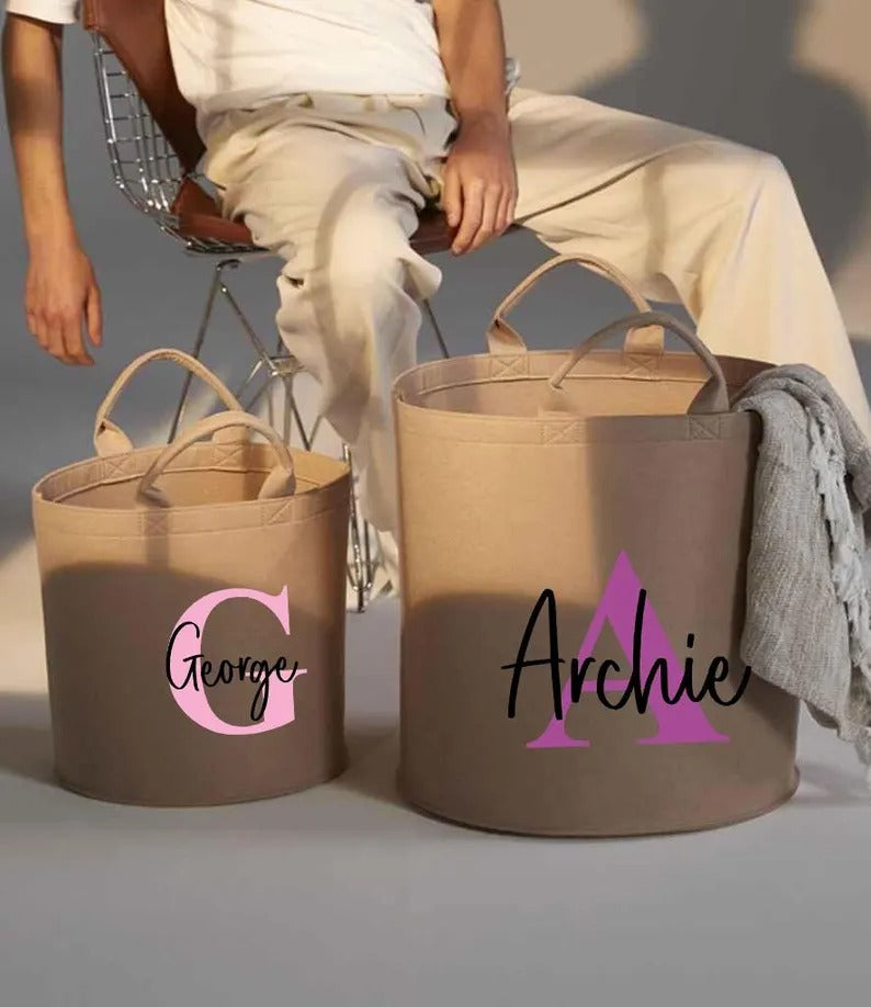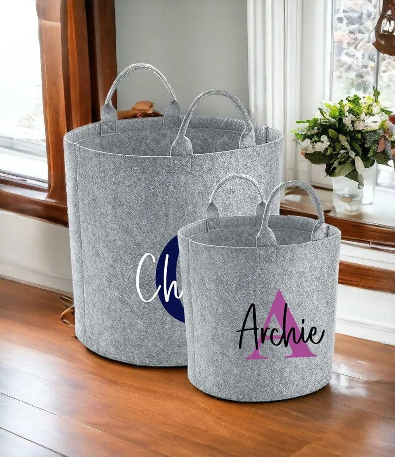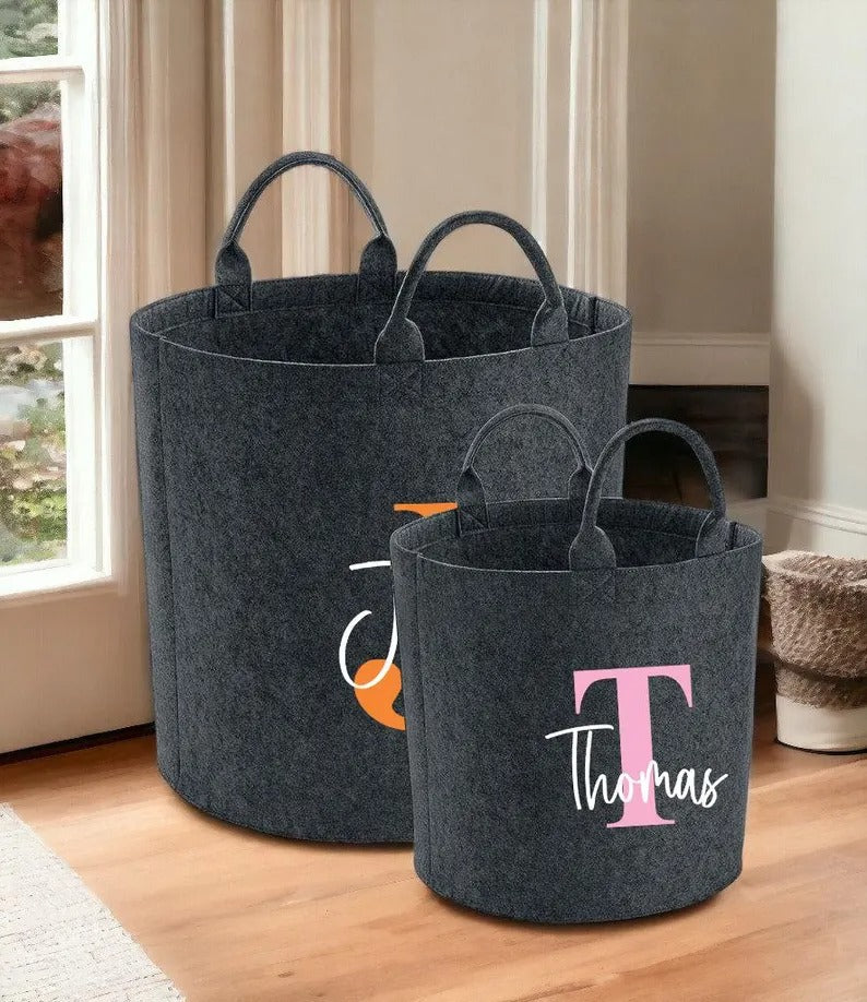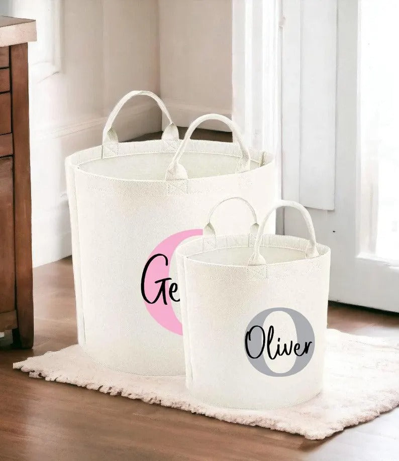 Personalised Felt Storage Basket with Initials, Custom Toy Organizer, Kids Printed Baskets