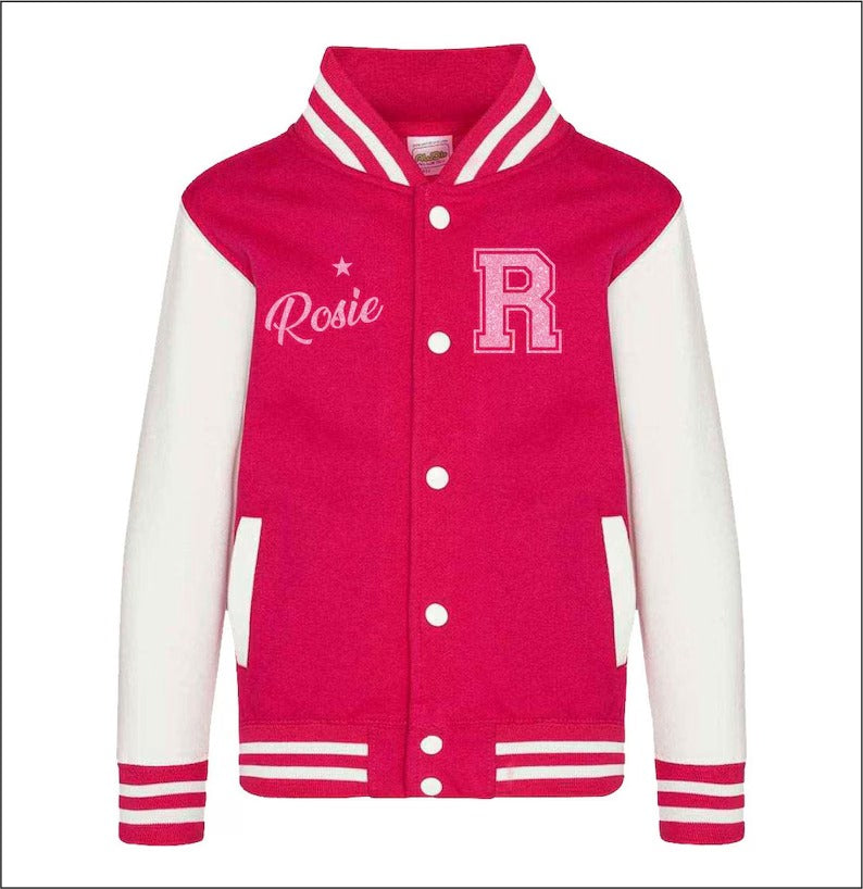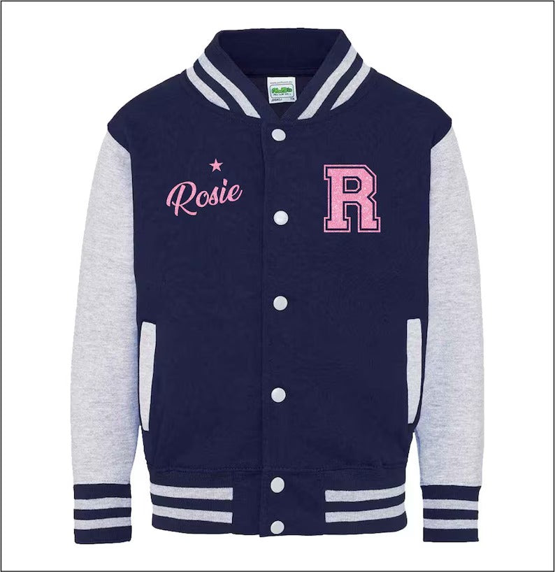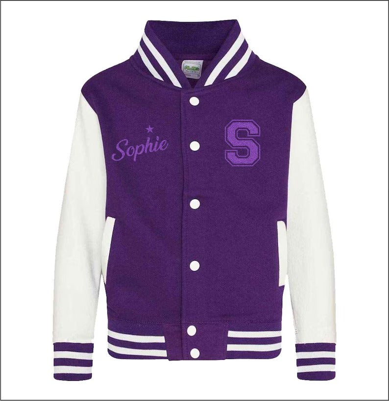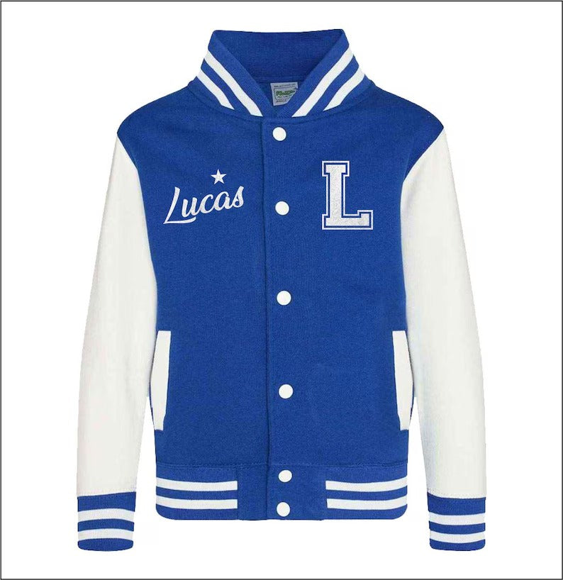 Personalised Kids Name & Initial Jacket, Custom Kids Varsity Jacket, Baseball Style Boys Girls School Jacket, Kids and Toddlers Sports Gifts