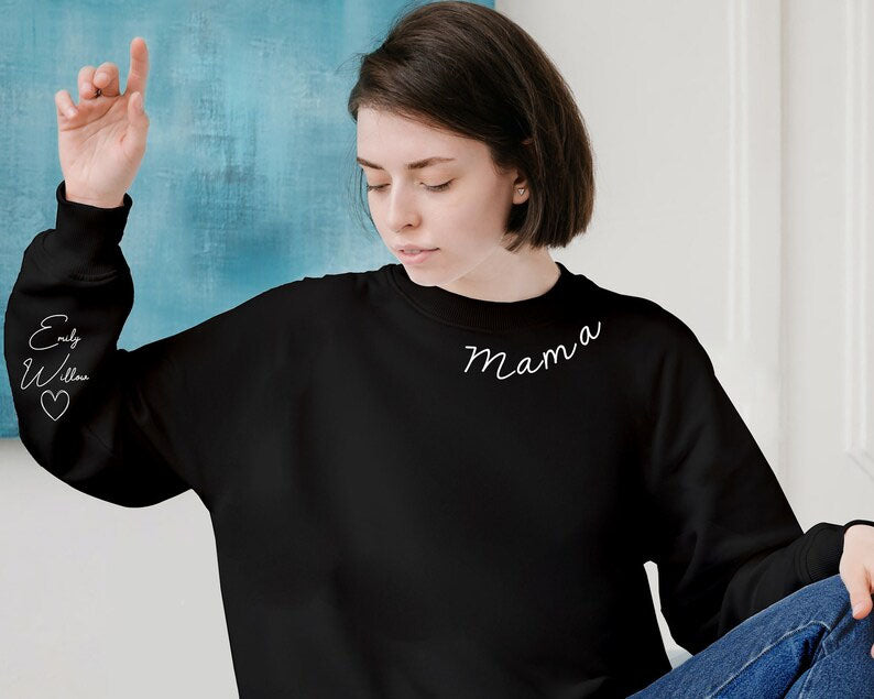 Personalised Mama Sweatshirt, Custom Kids Name On Sleeves Printed Jumper, Xmas Sweaters for Mum, Christmas Mom Birthday Gifts, Xmas Presents