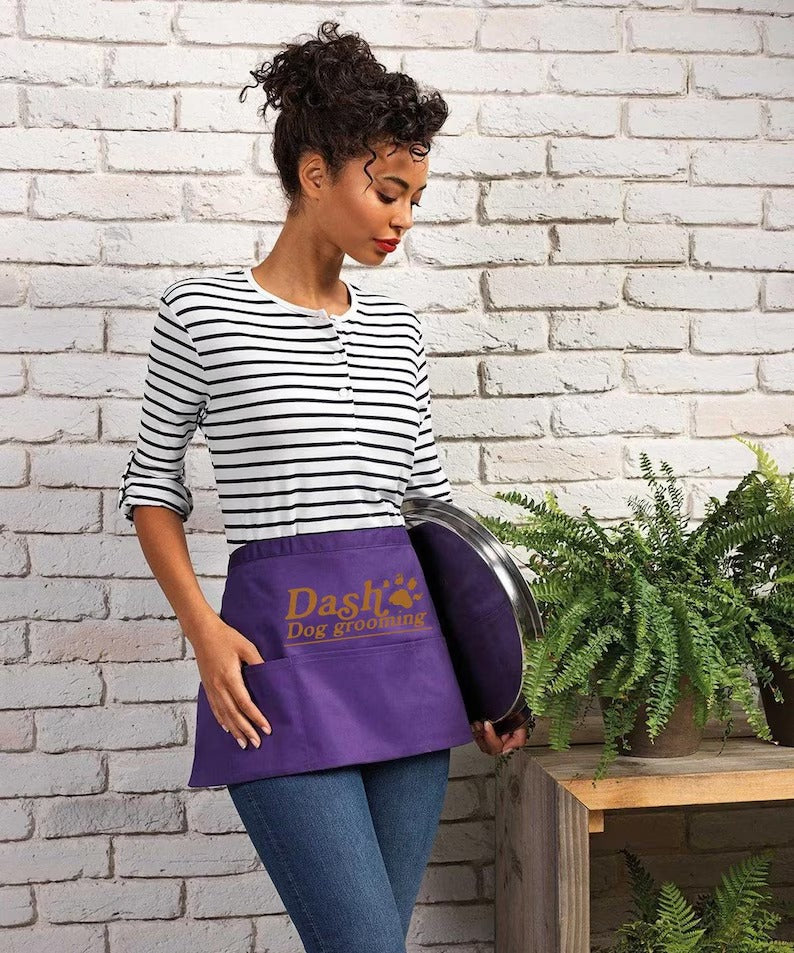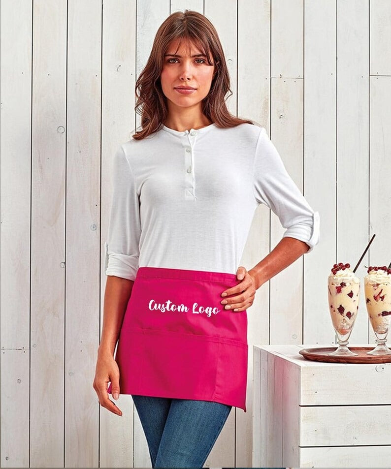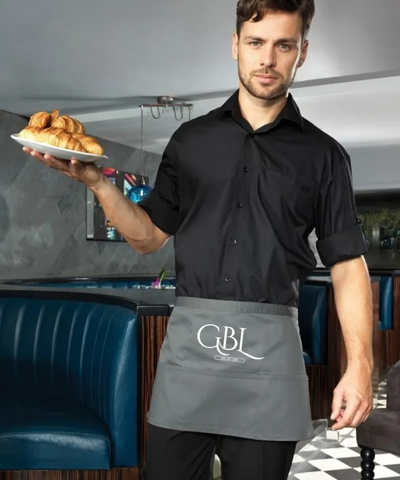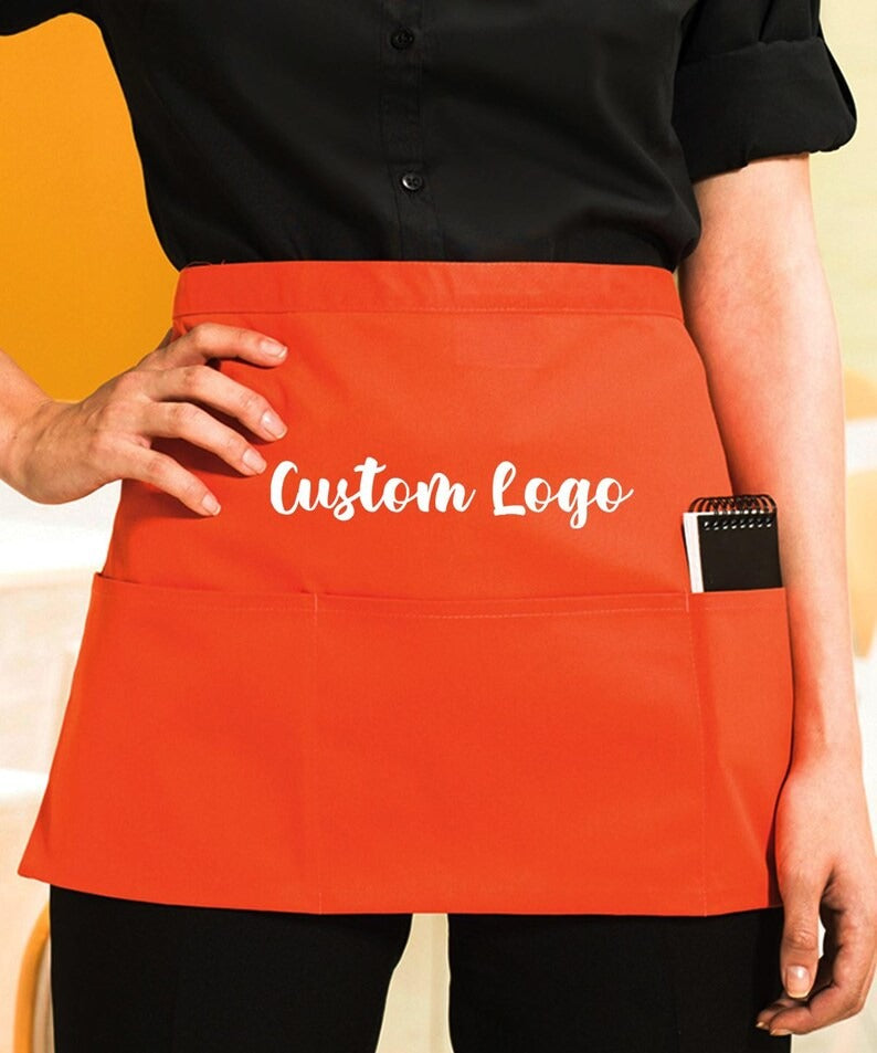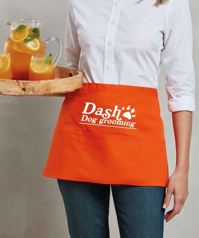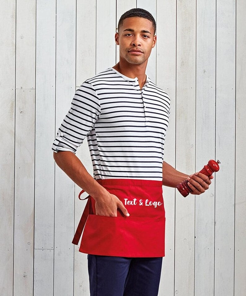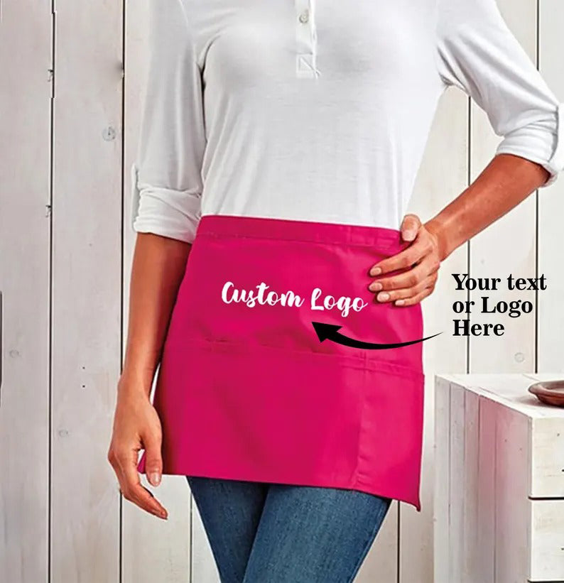 Personalised Short Apron, Custom Name /Logo Printed Aprons, Cocktail Bar Apron