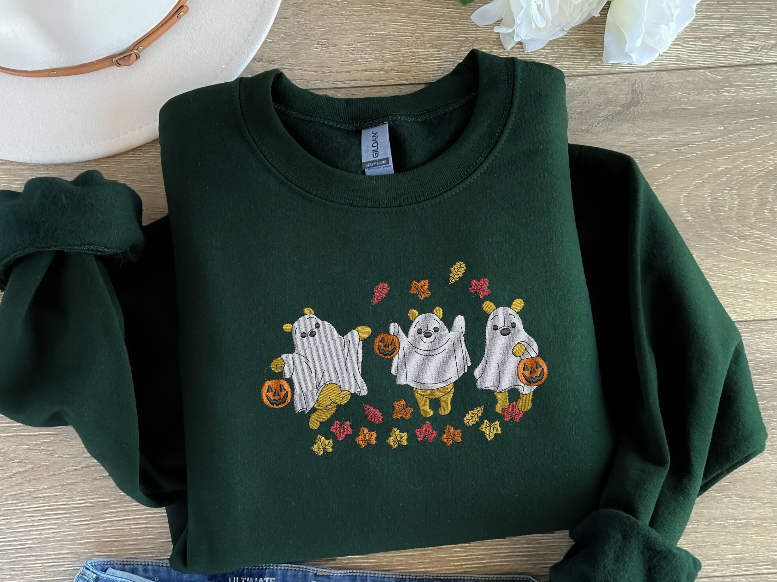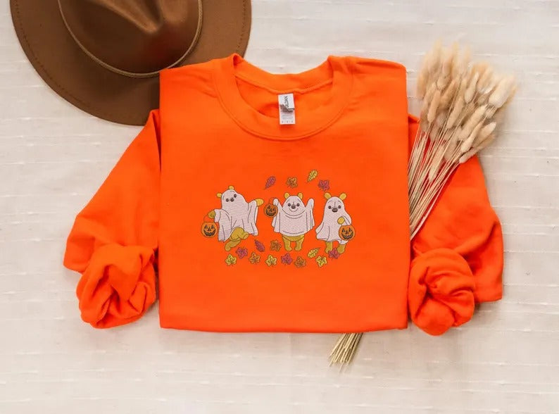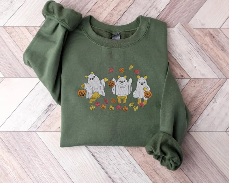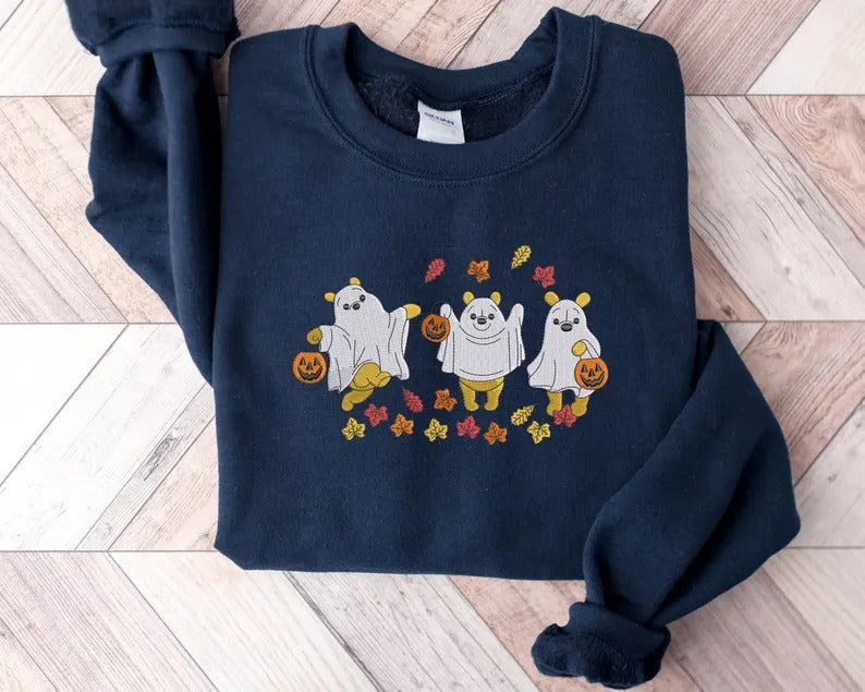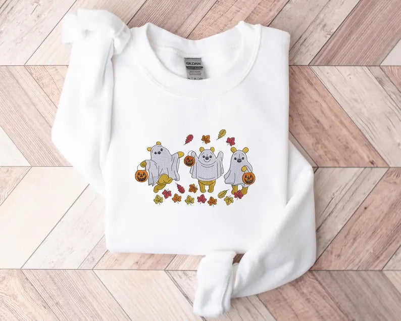Retro Pooh Ghost Halloween Sweatshirt, Funny Pooh Ghost Embroidered Sweater
