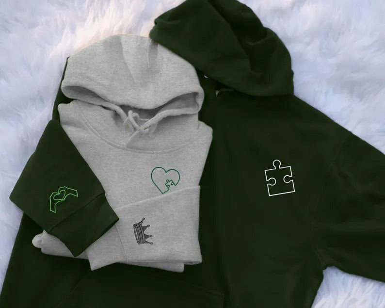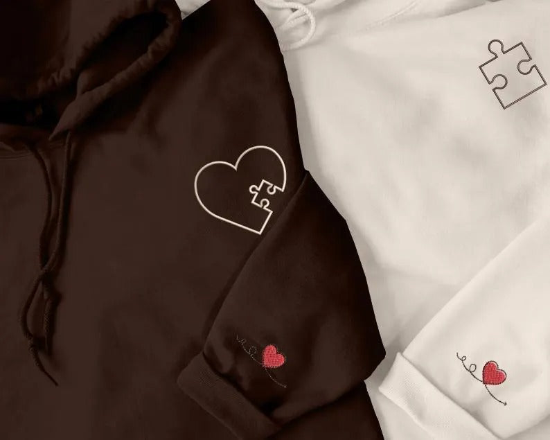 Embroidered You Complete Me Heart Puzzle Hoodies, Matching Hoodies for Couples